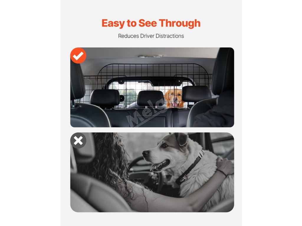 Tato zábrana pro domácí zvířata ve vozidle zajišťuje nerušený výhled na zadní sedadlo, což umožňuje řidiči dobře vidět do zpětného zrcátka a bezpečně couvat, čímž se zvyšuje bezpečnost jízdy.