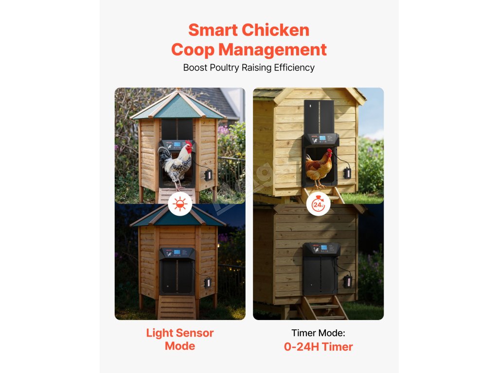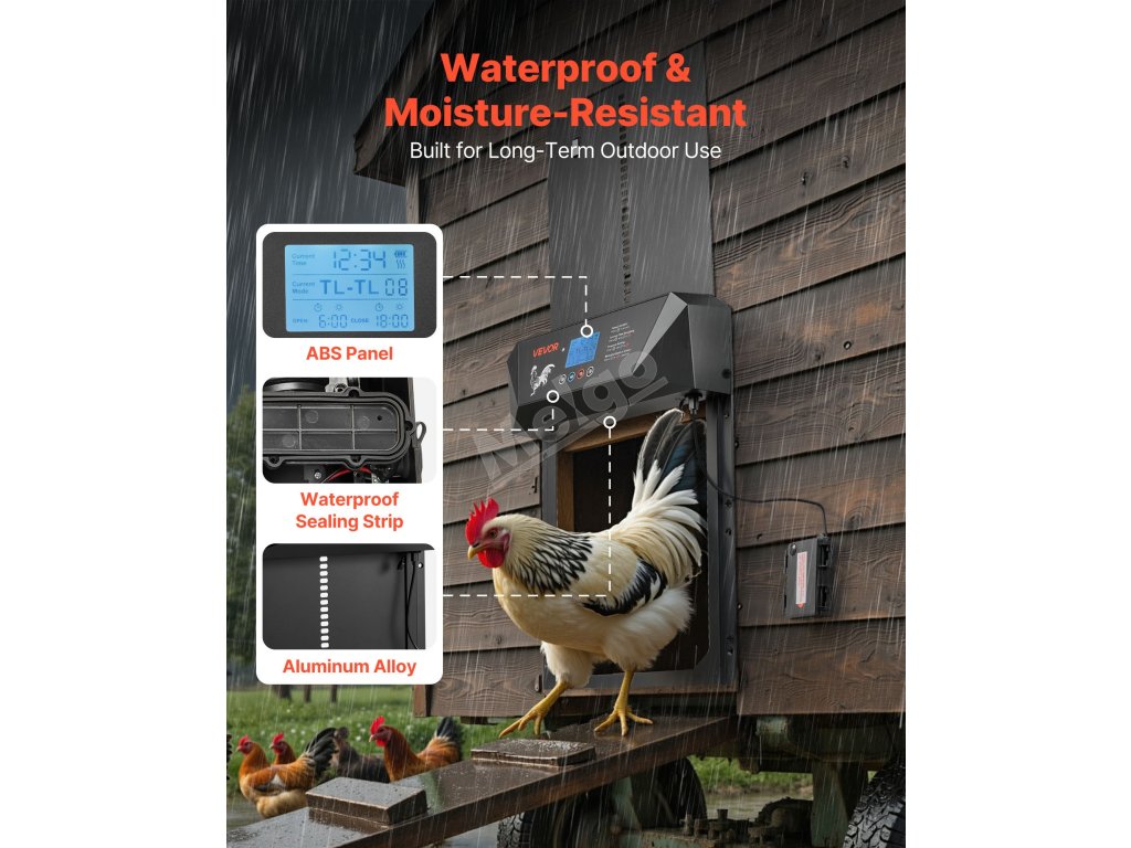 Automatická dvířka topeniště nabízejí několik inteligentních režimů - světelný senzor, časovač, dálkové ovládání a manuální režim. Konstrukce proti narušení zajišťuje bezpečný vstup a výstup. Vodotěsnost a odolnost proti vlhkosti zajišťují spolehlivý výkon za každého počasí a v každém prostředí.