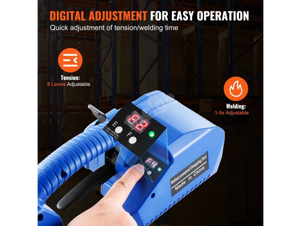 Nastavení svařovacího napětí a času je velmi snadné díky digitálnímu displeji našeho páskovače. Na výběr je několik nastavení, která vám usnadní a urychlí práci. Napínání, svařování a řezání probíhá v jednom zařízení, takže se můžete rychle pustit do práce.