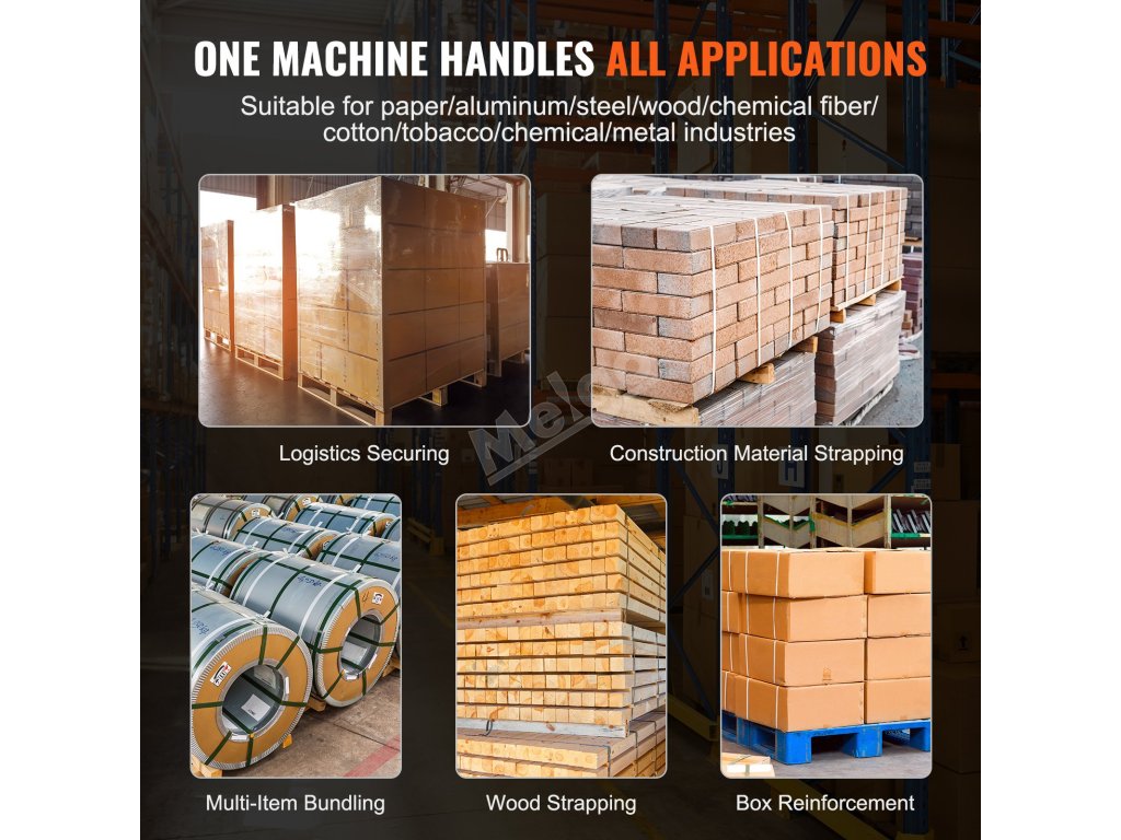 Díky výkonnému bezkartáčovému motoru poskytuje tato elektrická řezačka pásky stabilní a silný výkon. Utahování pásky je snadné pomocí jediného tlačítka; není třeba žádných svalů. Skvěle se hodí pro všechny druhy balicích prací, od balení papíru a hliníku až po balení oceli a dřeva.