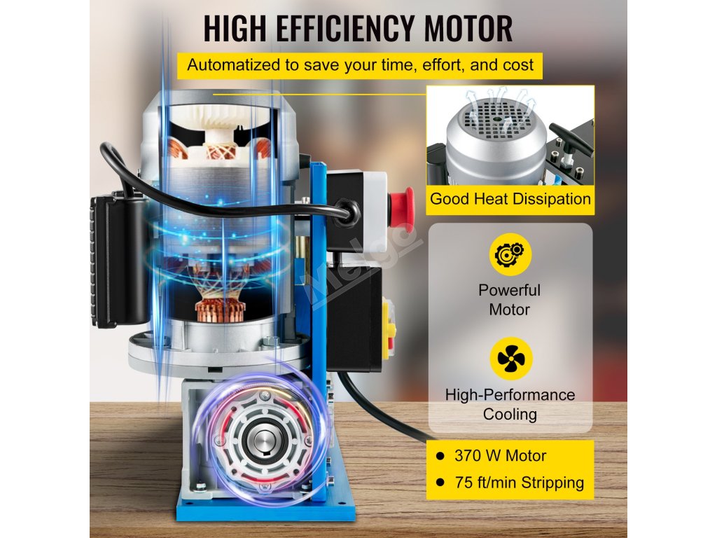 Díky výkonnému 370W motoru a vysoce výkonnému chlazení může tento odizolovací stroj pracovat efektivně i nadále.