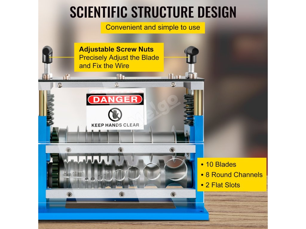 Tento elektrický stroj na odizolování vodičů má 11 kanálů a 10 nožů, které si poradí s různými typy vodičů najednou. Výběrem tohoto odizolovače drátů VEVOR výrazně zvýšíte efektivitu práce a ušetříte čas a práci.