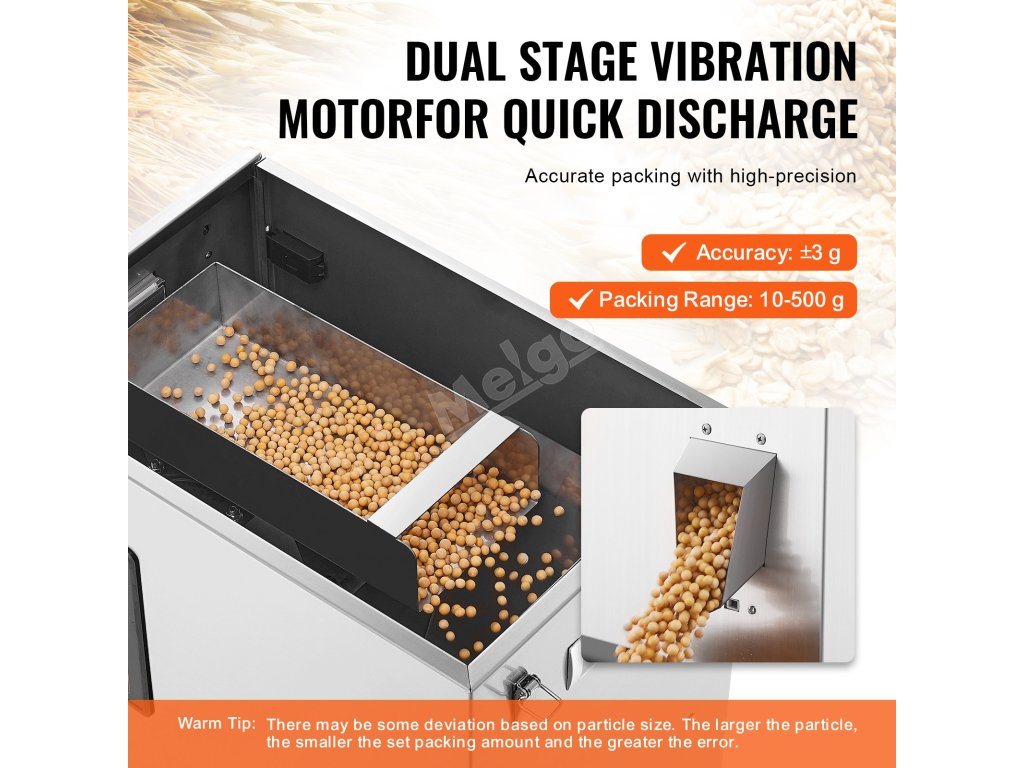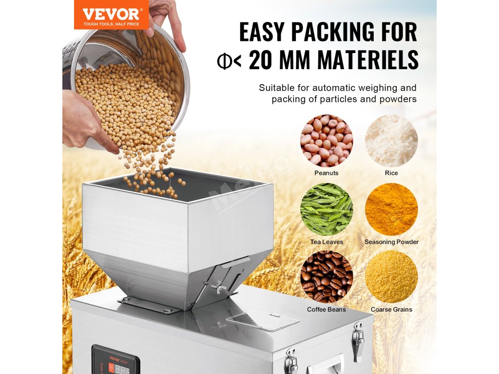 Před zakoupením našeho stroje na plnění částic si prosím uvědomte, že některé materiály nejsou použitelné. Ocelové kuličky nebo skleněné kuličky mají tendenci vytvářet statickou elektřinu. Lepivé látky nemusí hladce proudit a mokré nebo nadýchané potraviny mohou způsobit ucpání.