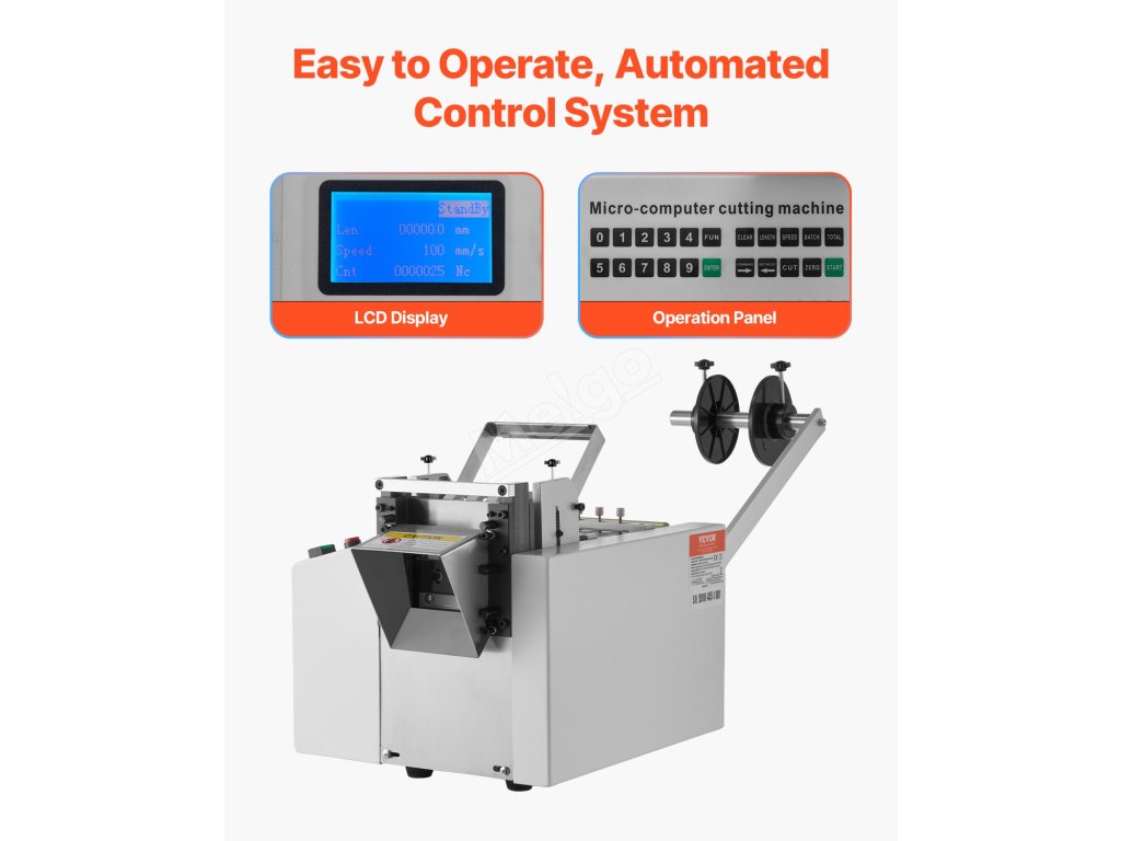 Tento automatický stroj na řezání teplem smrštitelných trubek nabízí efektivní a přesné řezání více trubek. Má šířku řezu 1 85 mm, délku řezu 0,1 mm až 99999,9 mm, automatický provoz, uživatelsky přívětivý ovládací panel a vysokorychlostní ocelový nůž SKD2, který zajišťuje spolehlivý výkon.