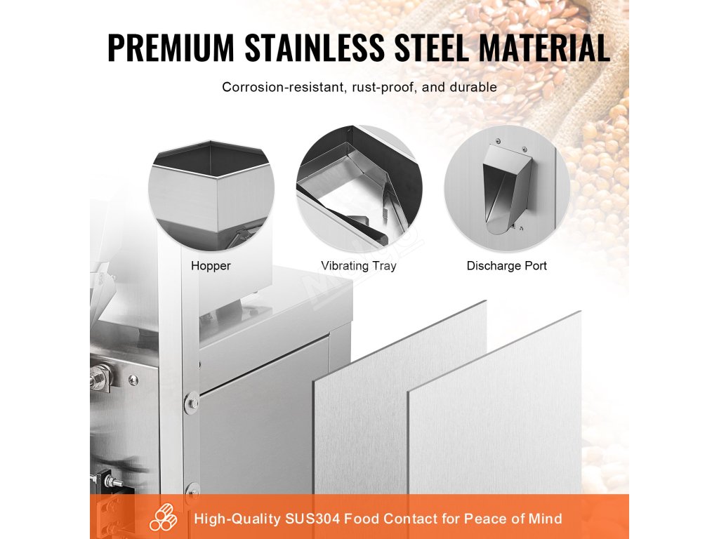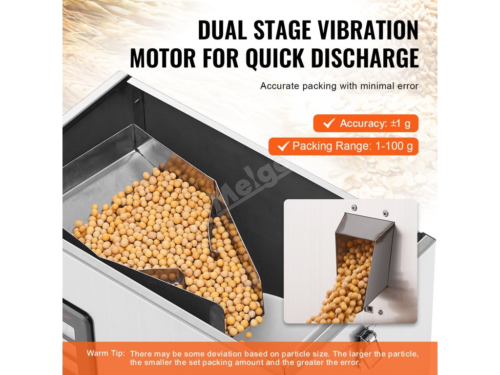 Před zakoupením našeho stroje na plnění částic si prosím uvědomte, že některé materiály nejsou použitelné. Ocelové kuličky nebo skleněné kuličky mají tendenci vytvářet statickou elektřinu. Lepivé látky nemusí hladce proudit a mokré nebo nadýchané potraviny mohou způsobit ucpání.
