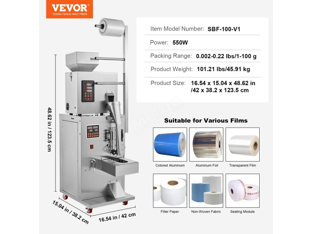 Automatický balicí stroj VEVOR na částice