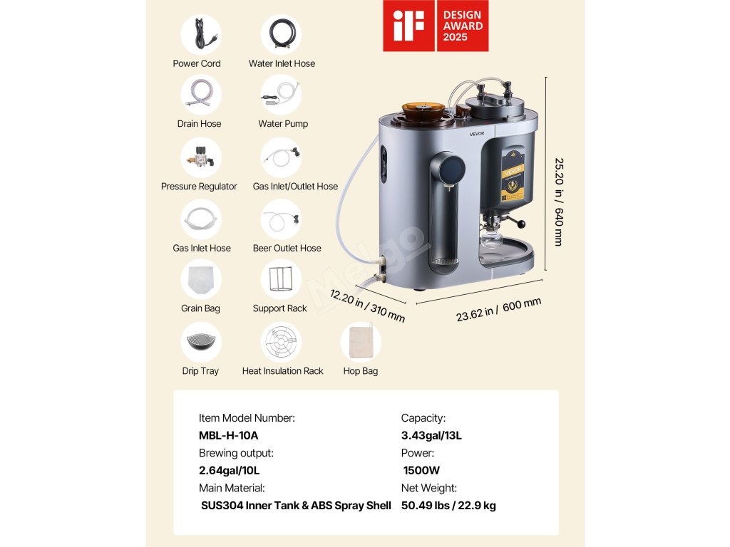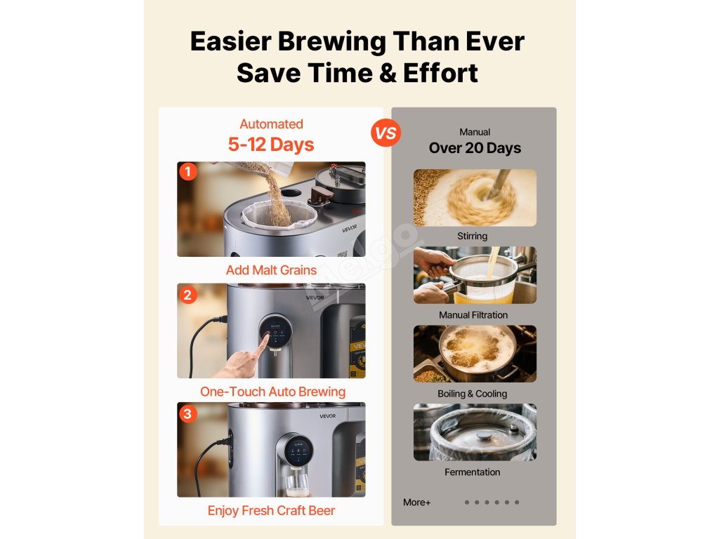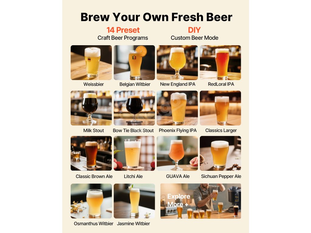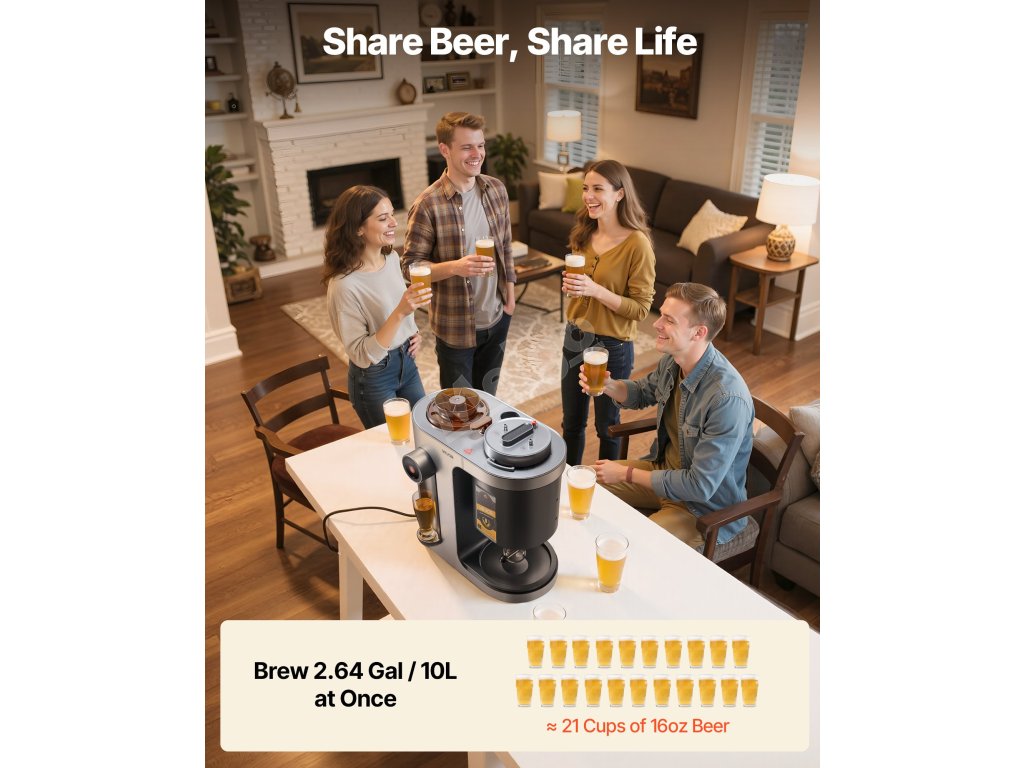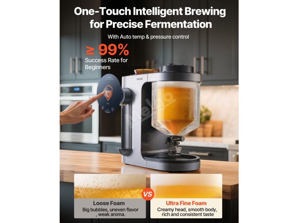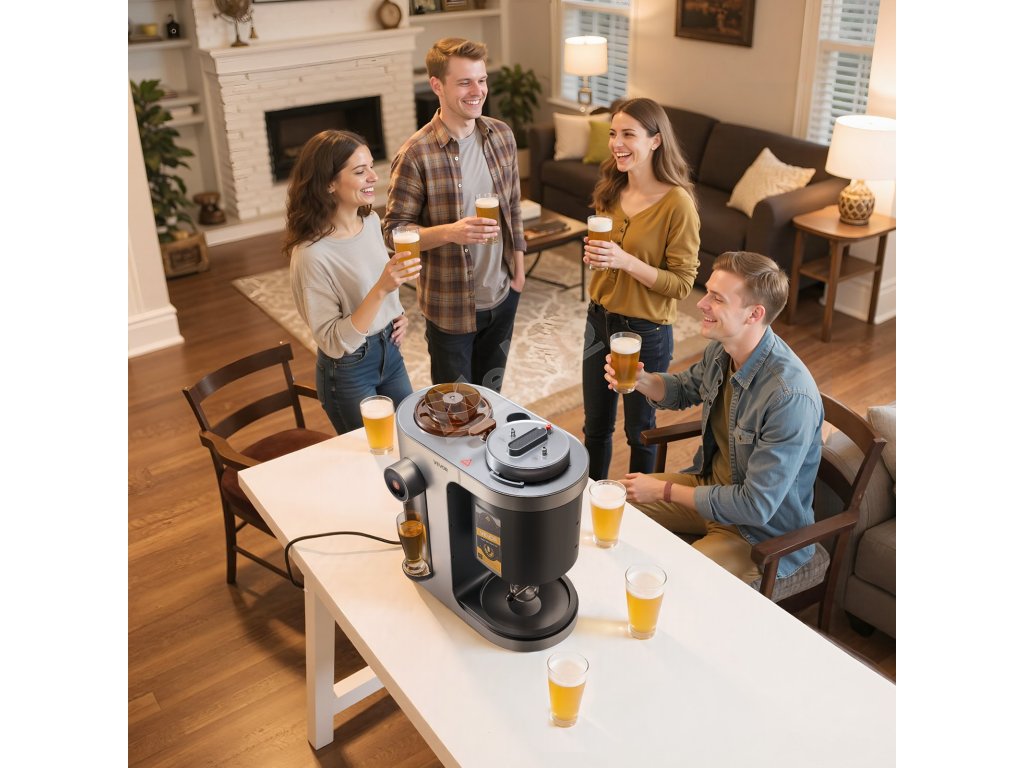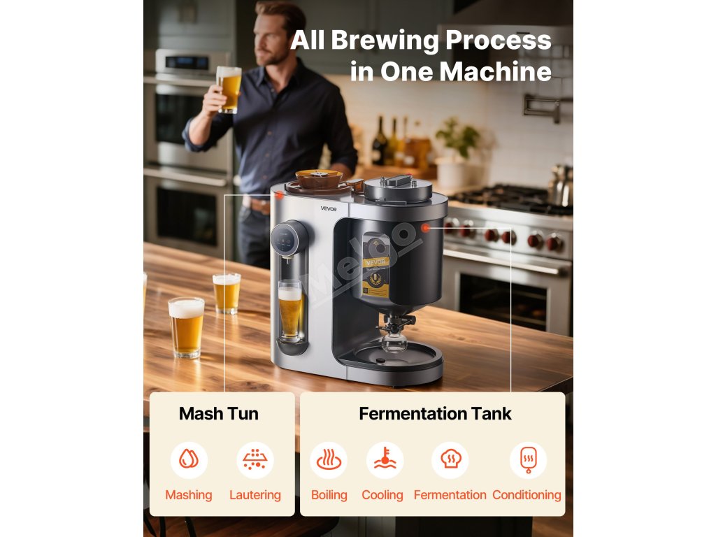 S tímto univerzálním zařízením si můžete snadno uvařit pivo doma. Plně automatické vaření piva od rmutování až po stáčení, spuštění jedním tlačítkem a přehledné pokyny na LCD displeji. 14 vestavěných receptů a režim DIY pro vlastní příchutě - ideální pro začátečníky a milovníky řemeslného piva.