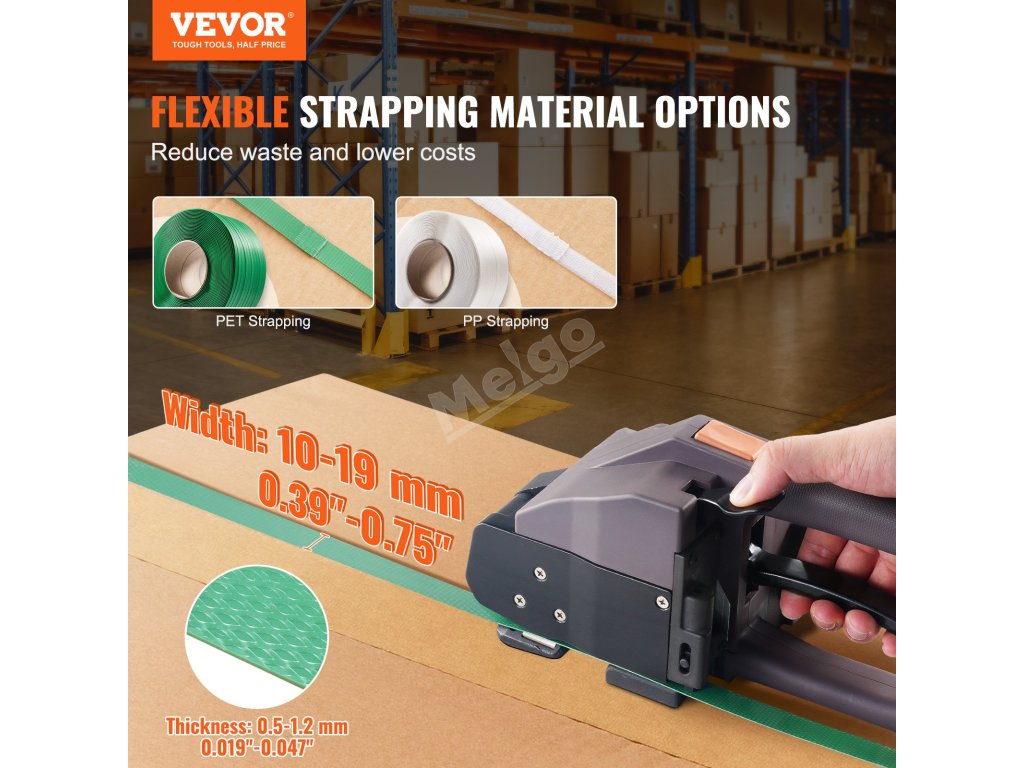 Náš elektrický páskovací stroj je ideální pro páskování PP a PET páskami. To znamená, že si můžete vybrat ten správný materiál pro své potřeby balení, snížit množství odpadu a ušetřit náklady.