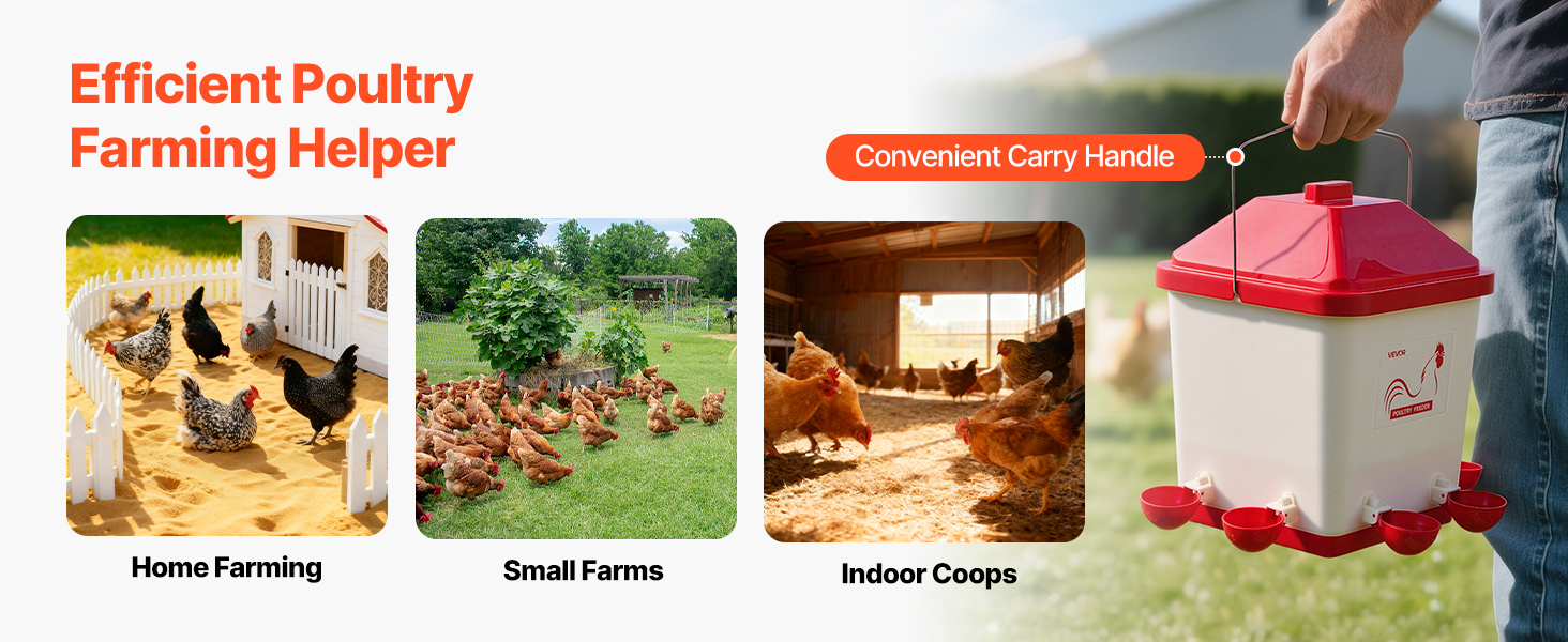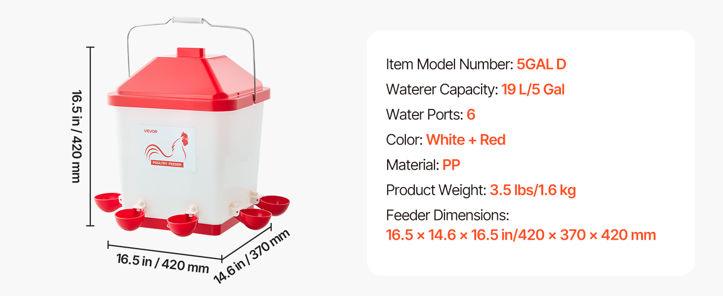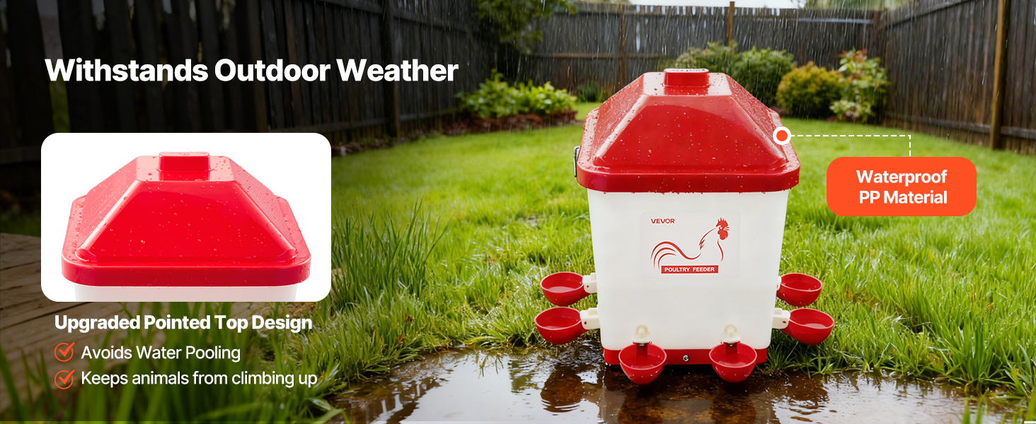 Tato napáječka pro kuřata je vyrobena z voděodolného PP se špičatou horní částí, která zabraňuje hromadění vody a brání zvířatům v lezení nebo sezení, čímž udržuje kurník čistý.