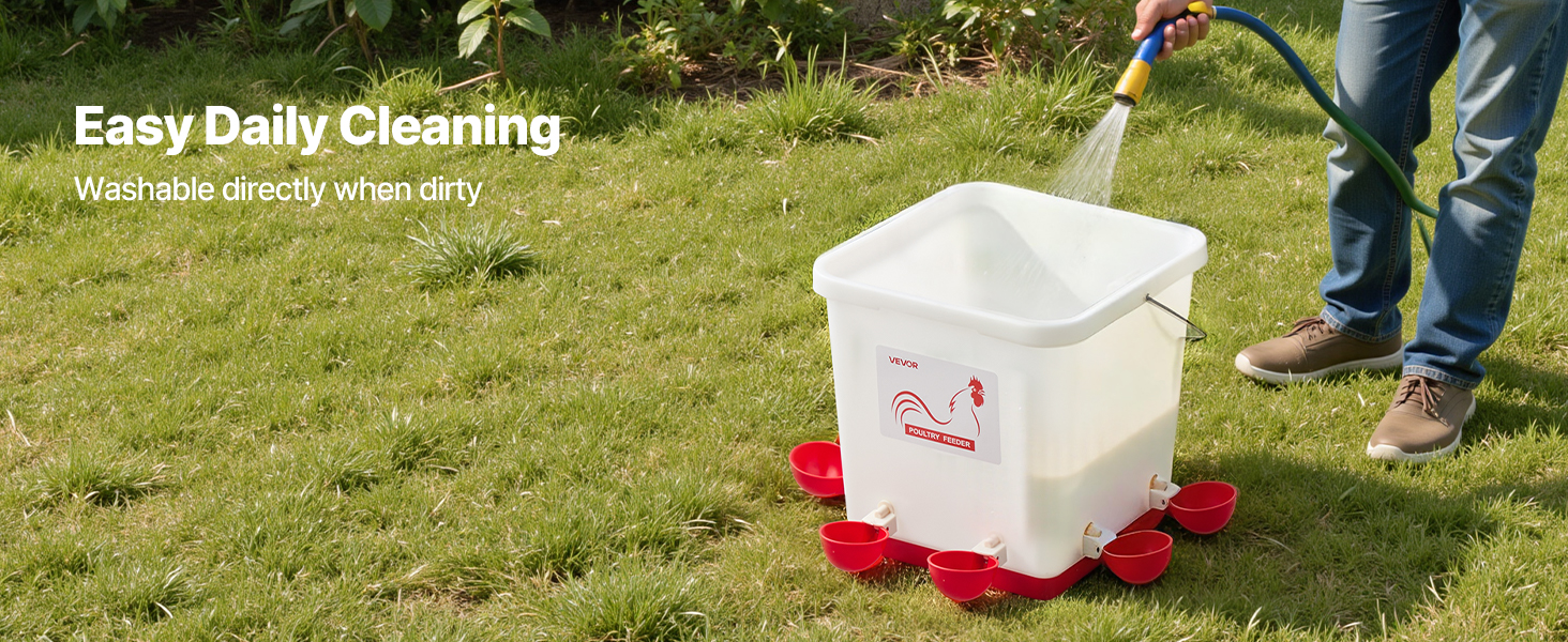 Tuto automatickou napáječku pro kuřata lze při znečištění rychle vypláchnout vodou, takže každodenní čištění je rychlé a bezproblémové.