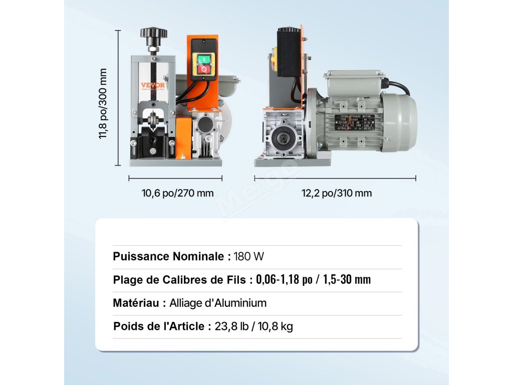 Automatický odizolovač kabelů 1,5–30 mm, 180 W, 18,3 m/min, s hloubkou