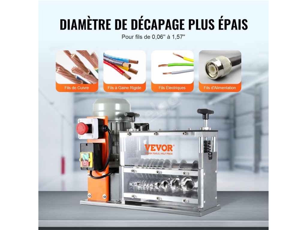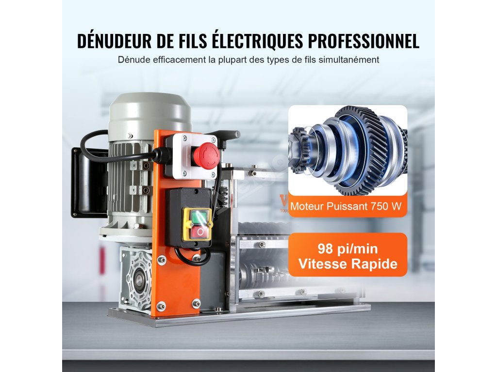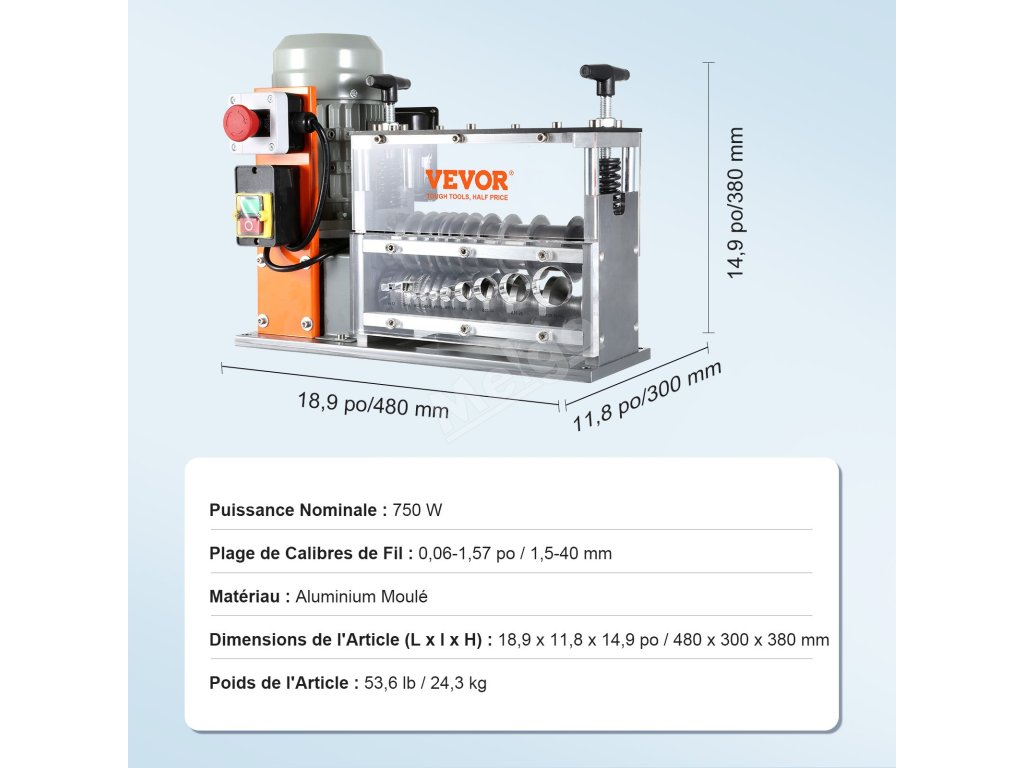 Elektrický odizolovací stroj VEVOR je nielen výkonný, ale aj rýchly pri manipulácii s káblami. Je to 750-wattový motor, ktorý dodáva silný, stabilný výkon a pracuje ticho, aby rýchlo odizoloval káble. Stroj má vysokú rýchlosť 30 m za minútu, čo mu umožňuje pracovať s väčším počtom káblov za kratší čas.