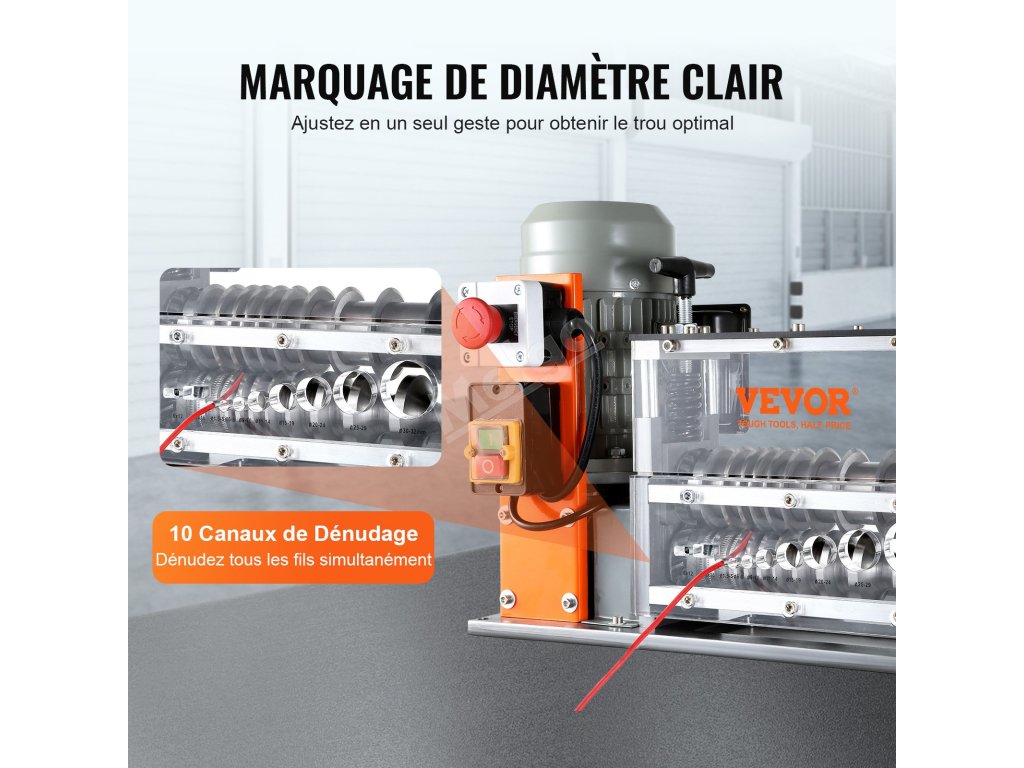 Vylepšený elektrický odizolovací stroj VEVOR uľahčuje a urýchľuje odizolovanie vodičov. Každý kanál má teraz vedľa otvorov jasné označenie veľkosti, takže môžete okamžite vybrať správny otvor. Už nemusíte hádať alebo skúšať rôzne možnosti. Šetrí to čas a pomáha vám to získať presné výsledky hneď od začiatku. Značky sú ľahko čitateľné aj pri slabom osvetlení, vďaka čomu je nastavenie jednoduché a rýchle.