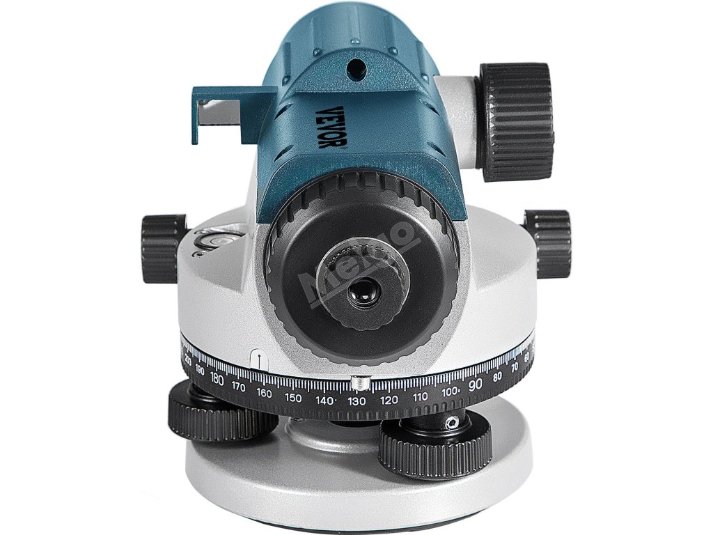 Naše automatická optická vodováha má objektiv s 26násobným zvětšením; dokáže měřit s přesností 1/16 palce na 100 stop, a to i při slabém osvětlení.