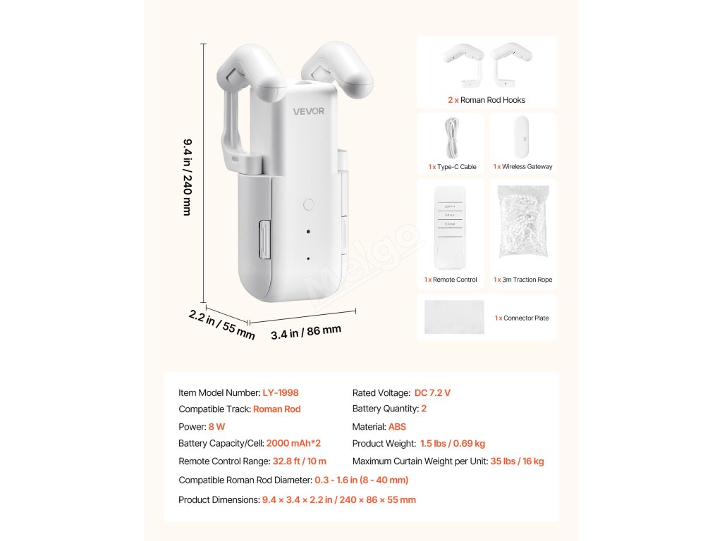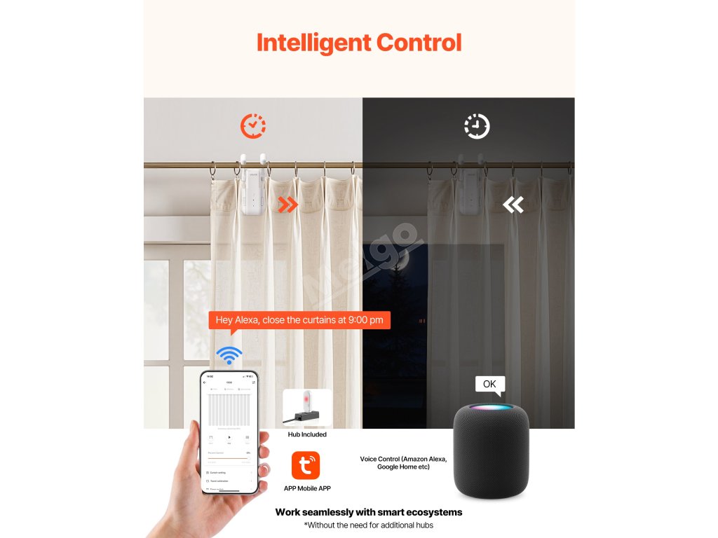 S tímto automatickým otvíračem záclon můžete snadno ovládat záclony z postele. Není nutná výměna kolejnic. Je kompatibilní s římskými tyčemi a těžkými záclonami, poskytuje tichý provoz a podporuje dálkové ovládání, aplikaci Tuya, Google Home a hlasové ovládání - ideální do ložnic, obývacích pokojů a bytů.