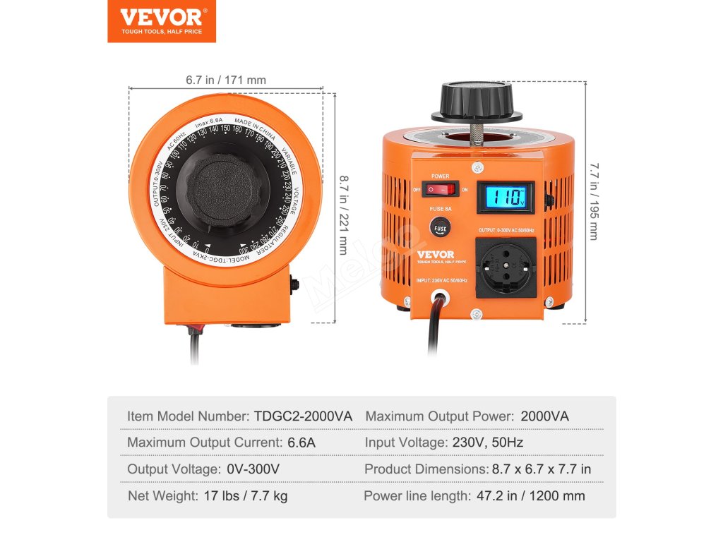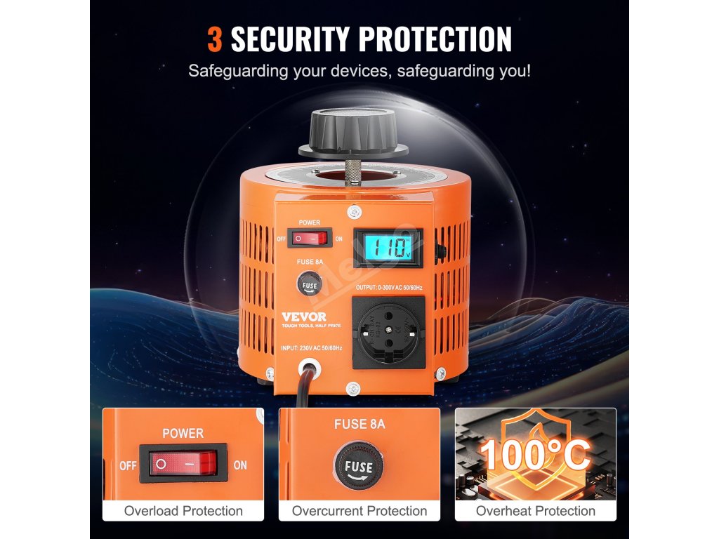 Transformujte napětí s přesností a klidem! Náš transformátor s proměnným napětím nabízí rozsah nastavení 0-300 V, pojistky, spínač tepelné regulace, resetovatelnou ochranu proti přetížení a certifikaci CE, která zajišťuje stabilní napájení.