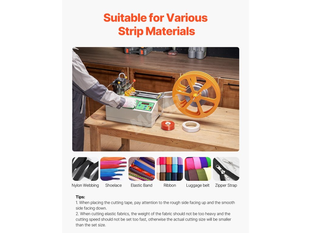 Náš stroj na řezání popruhů nabízí vysokou účinnost a přesné řezání více popruhů. Je vybaven řezáním za tepla i za studena, automatickým ovládáním, uživatelsky přívětivým ovládacím panelem a vysokorychlostním ocelovým nožem SKD2, který zajišťuje spolehlivý výkon při řezání nylonových popruhů, stuh, zipových pásků atd.