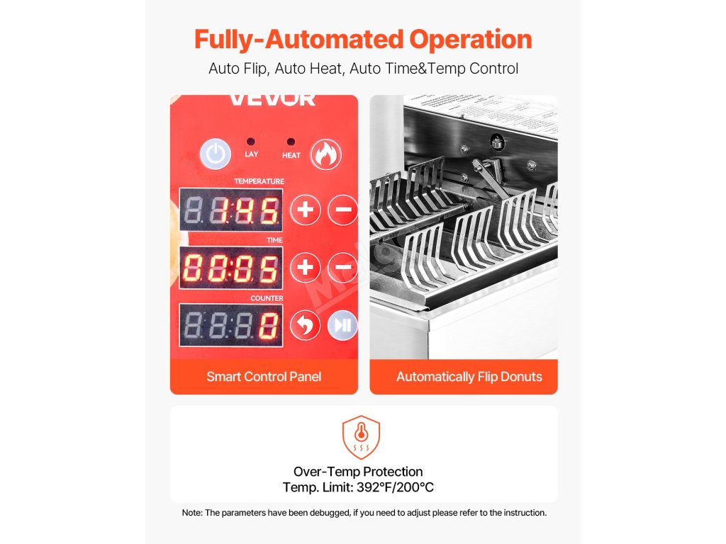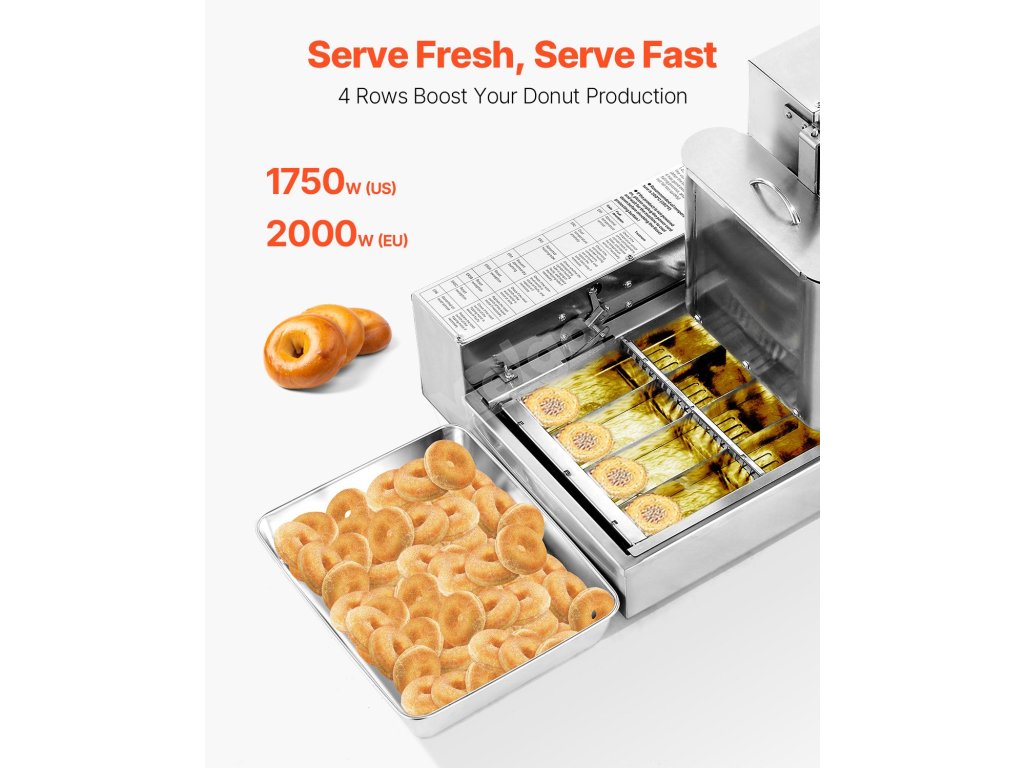 Q1: Kolik koblih dokáže stroj vyrobit za hodinu?A1: Náš stroj na koblihy dokáže vyrobit až 240 koblih za hodinu. Je navržen pro vysokou účinnost, takže se skvěle hodí pro komerční použití v pekárnách, kavárnách a stáncích s jídlem. O2: Dá se stroj snadno čistit?A2: Ano! Odpověď: Díky konstrukci z potravinářské nerezové oceli 304 je čištění rychlé a snadné. Stačí stroj po každém použití otřít a je připraven na další várku. 3. otázka: A3: Rozhodně! Přístroj je vybaven nastavitelnou regulací teploty a přesným časovačem, což vám umožní přizpůsobit podmínky smažení pro vždy dobře propečené koblihy.