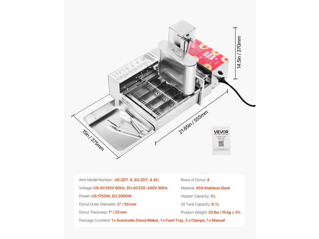 | Hrúbka donutu | 0.6"-1,2" / 15-30 mm |