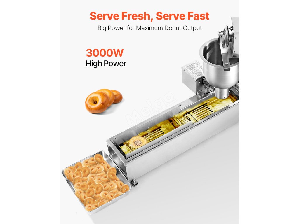 Tento plně automatizovaný stroj je navržen tak, aby zefektivnil výrobu koblih, a během několika minut poskytuje konzistentní, nadýchané a zlatavé koblihy. Ať už provozujete rušnou kavárnu, rušnou pekárnu nebo stánek s jídlem s vysokou poptávkou, tento stroj je navržen tak, aby zvládl i ta nejnáročnější komerční prostředí.