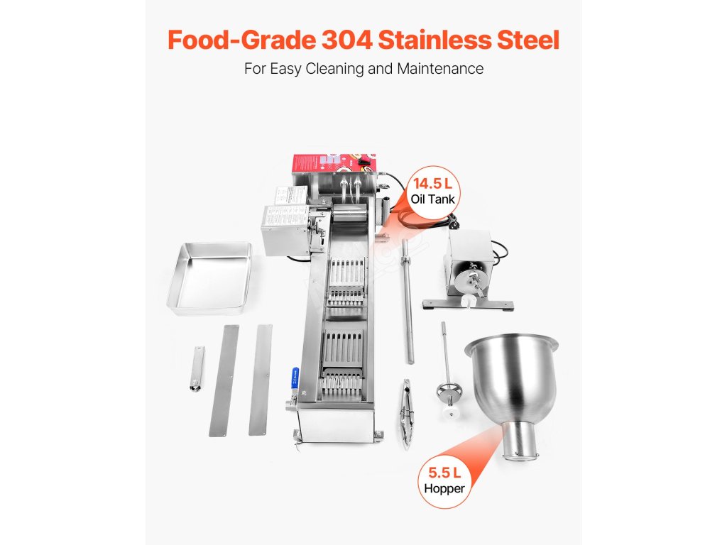 Q1: Kolik koblih dokáže stroj vyrobit za hodinu?A1: Náš stroj na koblihy dokáže vyrobit až 90 koblih za hodinu. Je navržen pro vysokou účinnost, takže se skvěle hodí pro komerční použití v pekárnách, kavárnách a stáncích s občerstvením. O2: Dá se stroj snadno čistit?A2: Ano! Odpověď: Díky konstrukci z potravinářské nerezové oceli 304 je čištění rychlé a snadné. Stačí stroj po každém použití otřít a je připraven na další várku. 3. otázka: A3: Rozhodně! Přístroj je vybaven nastavitelnou regulací teploty a přesným časovačem, což vám umožní přizpůsobit podmínky smažení pro vždy dobře propečené koblihy.