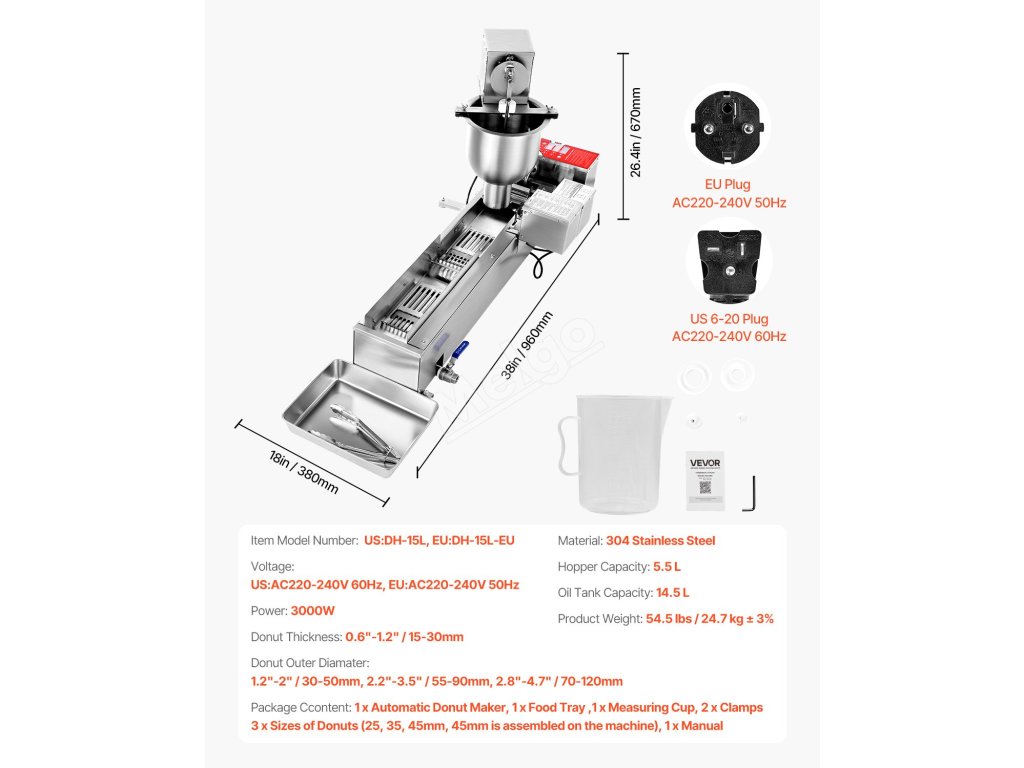 | Hrúbka donutu | 0.6"-1,2" / 15-30 mm |