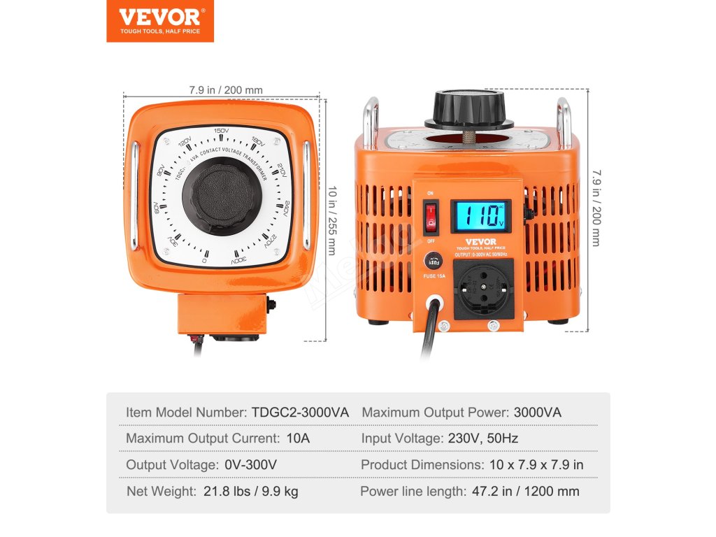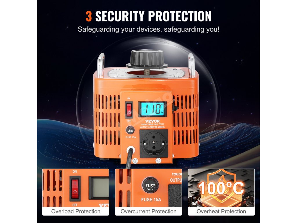 Transformujte napětí s přesností a klidem! Náš transformátor s proměnným napětím nabízí rozsah nastavení 0-300 V, pojistky, spínač tepelné regulace, resetovatelnou ochranu proti přetížení a certifikaci CE, která zajišťuje stabilní napájení.