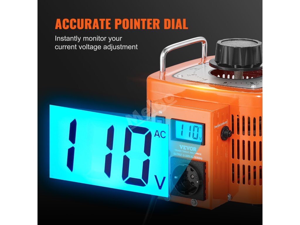 Pomocí horního knoflíku pro nastavení napětí můžete bez námahy a s nekonečnou přesností nastavovat svá elektrická zařízení. Vytočte přesně požadované napětí v rozmezí 0-300 V pro přesné napájení přizpůsobené vašim specifickým požadavkům.