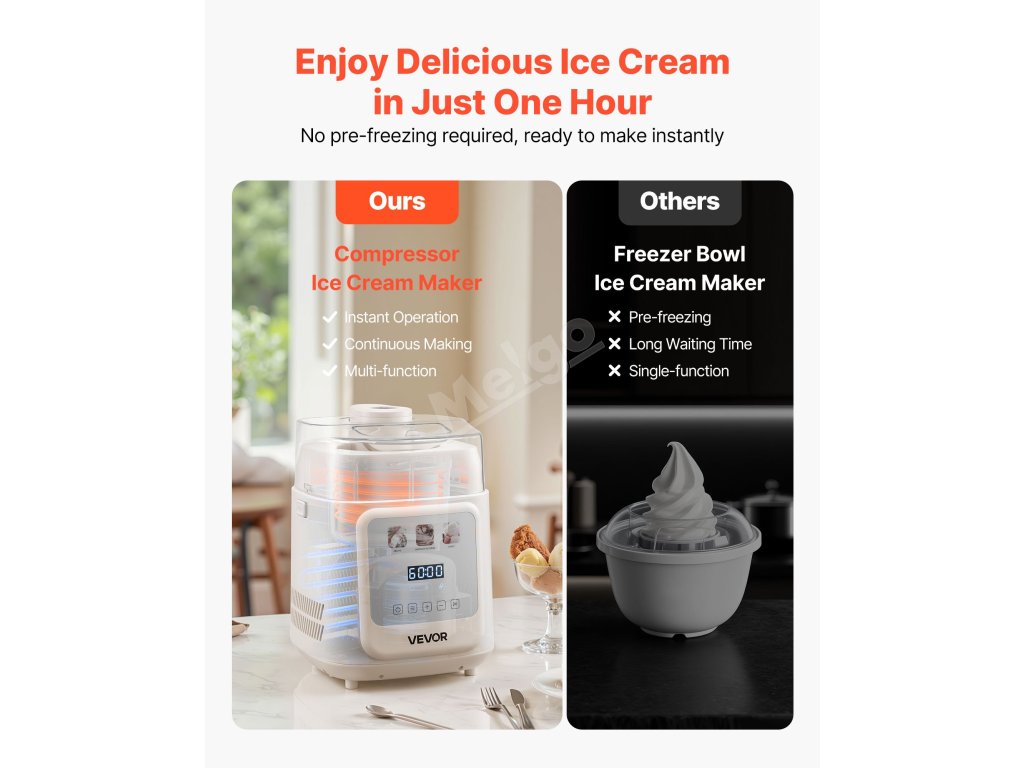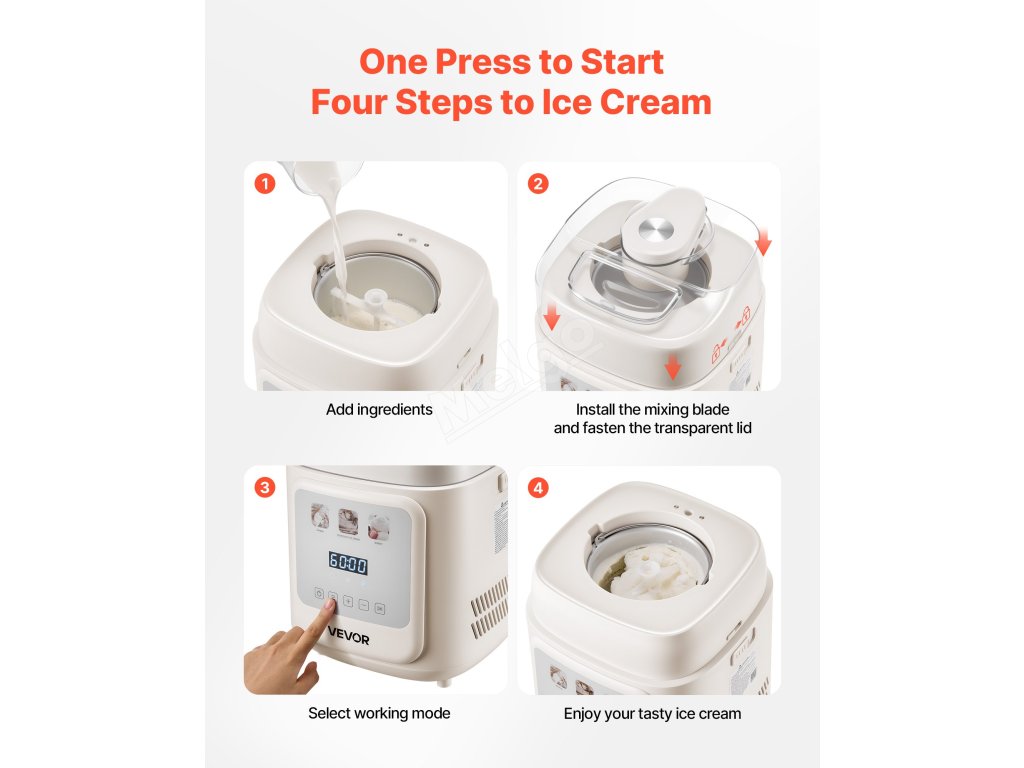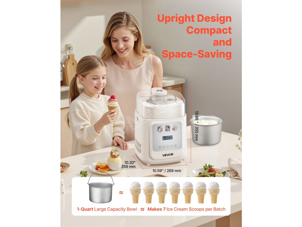 Tento 1quartový výrobník mraženého jogurtu a zmrzliny vám umožní snadno vytvářet sladké vzpomínky ve vaší kuchyni. Díky tomu, že není nutné žádné předmrazování a na výběr máte ze čtyř režimů, si můžete vychutnat rychlou a tichou výrobu zmrzliny a příjemné chvíle s rodinou.