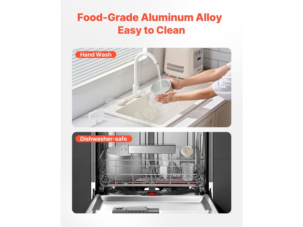 Kbelík na přísady je vyroben z potravinářské hliníkové slitiny vhodné pro styk s potravinami, což zajišťuje bezpečné a příjemné používání při každém jídle.
