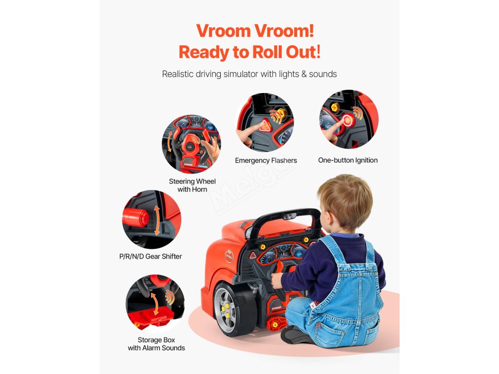 Nastartujte motory! Díky zábavným samolepkám a simulovanému kokpitu mohou děti předstírat, že řídí, řadit rychlosti, troubit a používat nouzové blikače. Náš motor na hraní je pro ně skvělým způsobem, jak prozkoumat svět řízení!