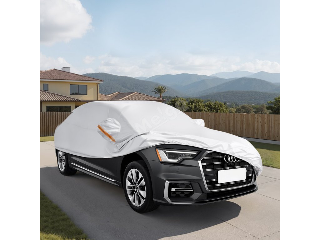 Tento potah na auto na míru je vyroben pro extrémní počasí a má elastické lemy na přední i zadní straně, aby dokonale padl. Tři větruodolné popruhy s přezkami zajišťují dodatečnou stabilitu a zabraňují utržení potahu při silném větru nebo tajfunu.