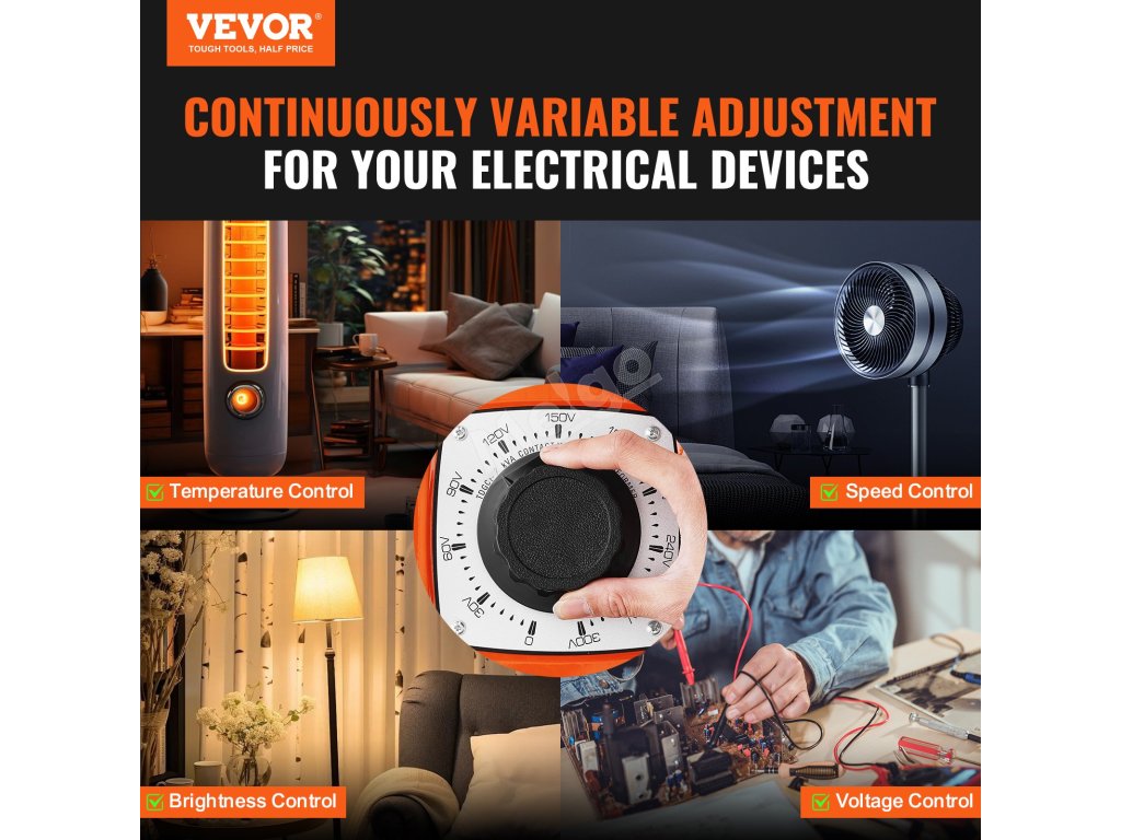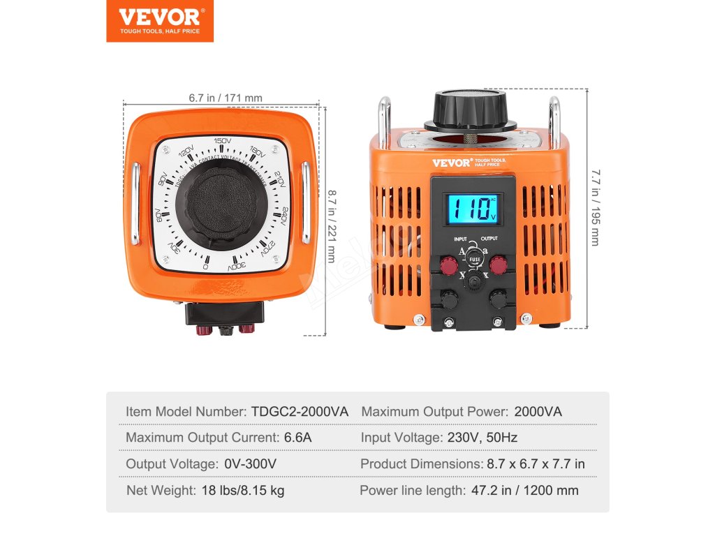 Transformujte napětí s přesností a klidem! Náš transformátor s proměnným napětím nabízí rozsah nastavení 0-300 V, pojistky, spínač tepelné regulace, resetovatelnou ochranu proti přetížení a certifikaci CE, která zajišťuje stabilní napájení.