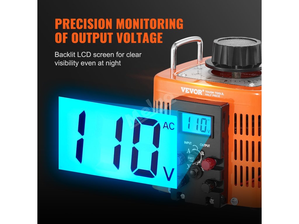 Autotransformátor 2000 VA 6.6 A 230 V vstup 0–300 V výstup s lcd