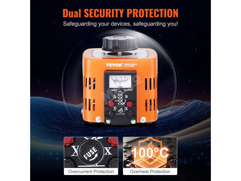 Transformujte napětí s přesností a klidem! Náš transformátor s proměnným napětím nabízí rozsah nastavení 0-300 V, pojistky, spínač tepelné regulace, resetovatelnou ochranu proti přetížení a certifikaci CE, která zajišťuje stabilní napájení.