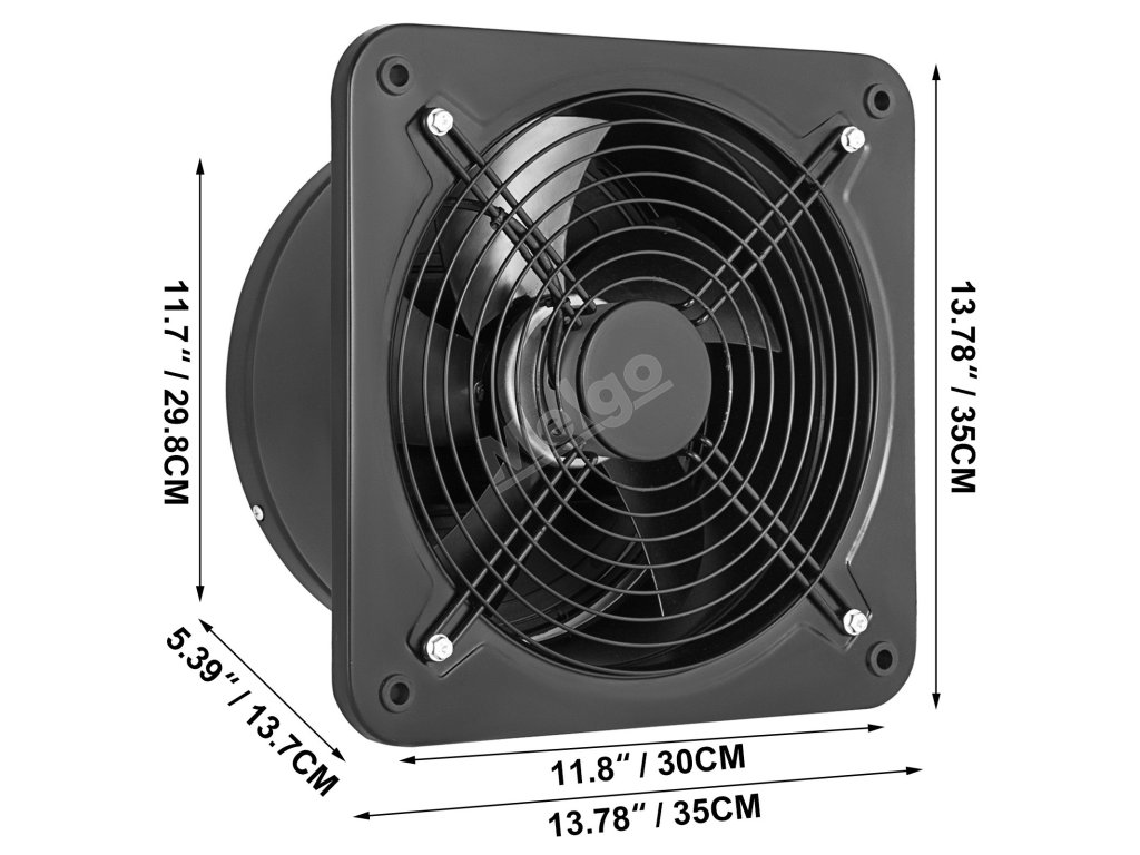 Axiální výfukový ventilátor 300 mm, kovový, 12 palců průměr.