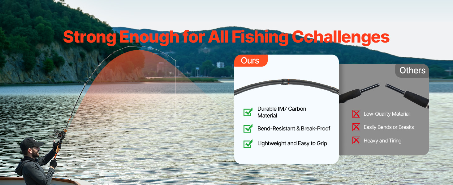 Tento prut je vyroben z odolného uhlíkového vlákna IM7, má vynikající odolnost proti ohybu a je méně náchylný ke zlomení. Lehká konstrukce zajišťuje pohodlí při dlouhodobém používání, usnadňuje zvládání silných tahů ryb a zvyšuje celkový zážitek z rybolovu.