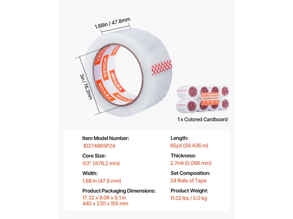 Naše cenově výhodná sada průhledné balicí pásky obsahuje 24 rolí 3palcové pásky s jádrem. Každá role je dlouhá 65yd/59,436m - 5-10yd/4,57-9,14m delší než standardní varianty. To znamená více pásky, méně časté výměny a ekonomičtější řešení pro všechny vaše balicí projekty.
