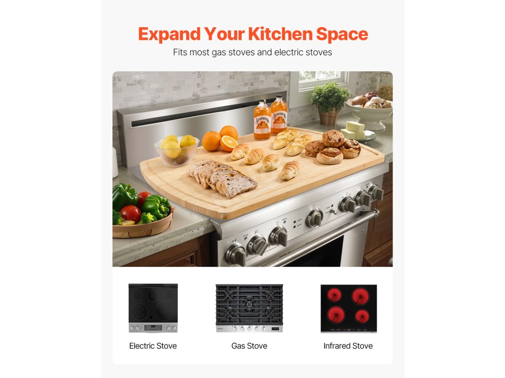 Náš dřevěný kryt varné desky má rozměry 30 × 22 palců a lze jej použít jako kryt pro plynové i elektrické sporáky. Je ideální pro kompaktní kuchyně, obytné vozy a další prostory s omezeným prostorem, protože vám poskytne další potřebný prostor v kuchyni.