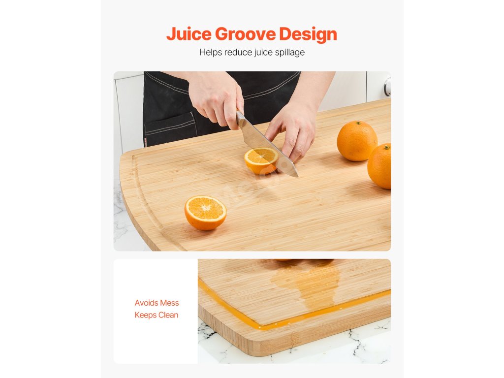 Naše prkénko na krájení má na okrajích drážky na šťávu, které pomáhají minimalizovat nepořádek způsobený zeleninovými a ovocnými šťávami, takže se již nemusíte obávat rozlití. Udrží vaši varnou desku suchou a čistou.