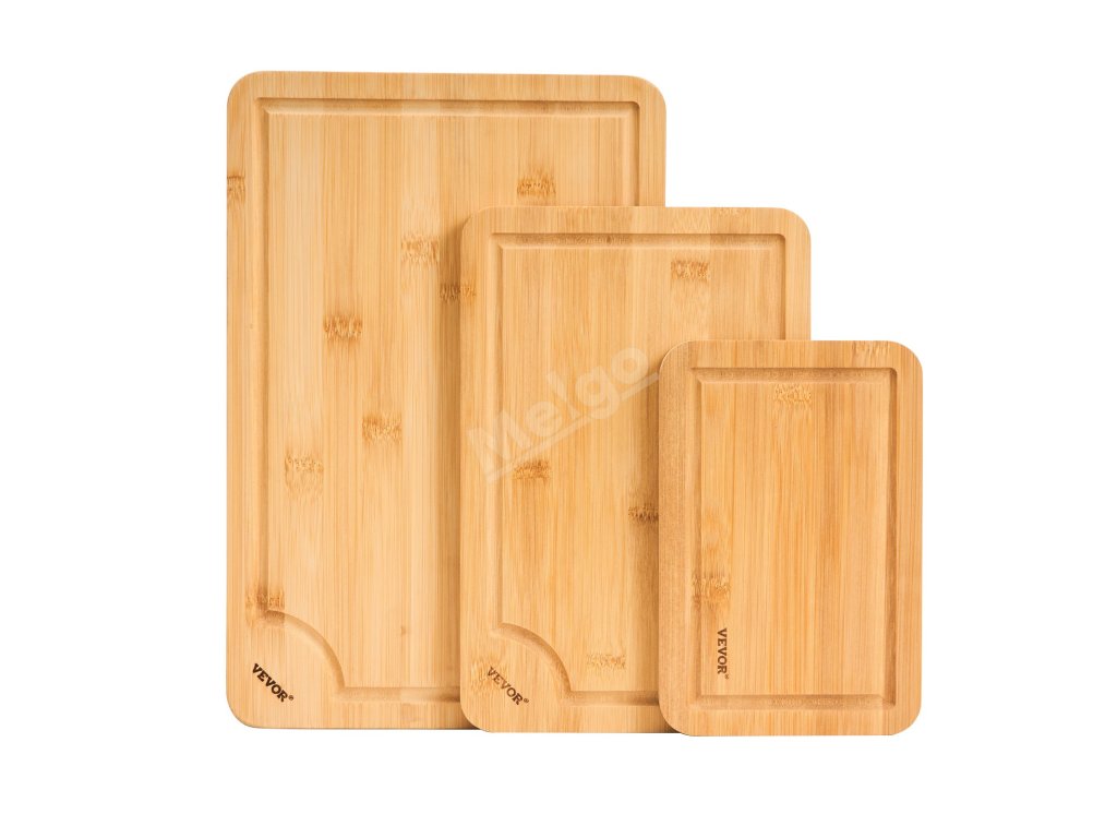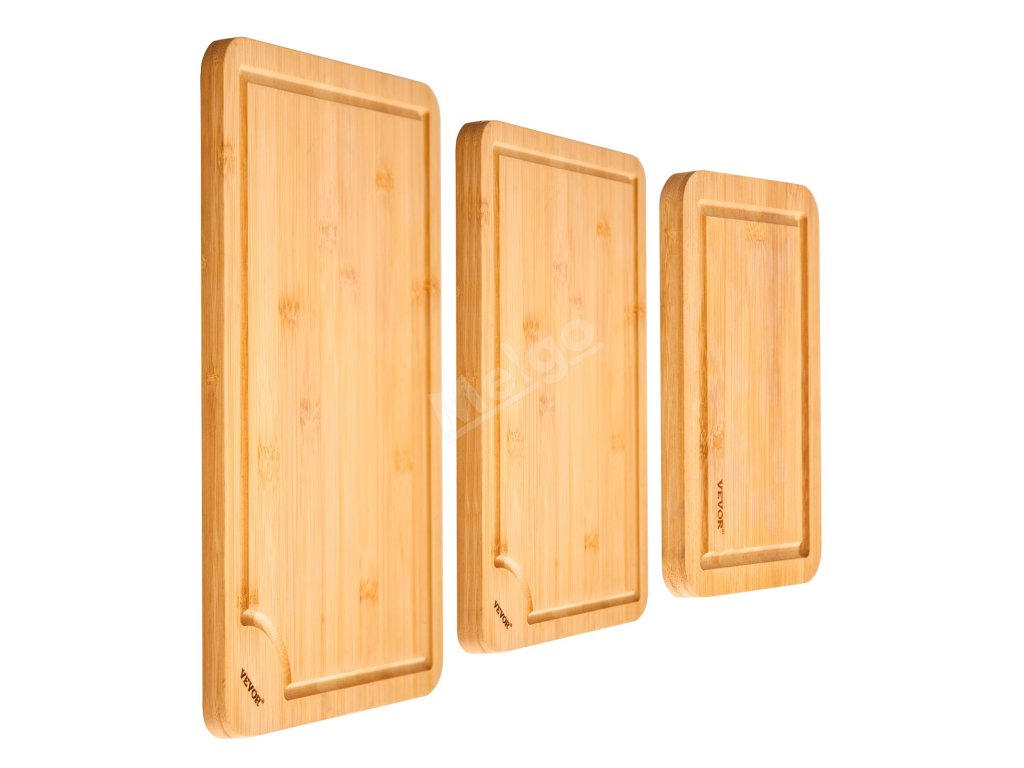 Bambusové prkénko na krájení 3 ks se žlábkem na šťávu a rukojetí