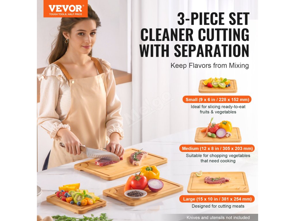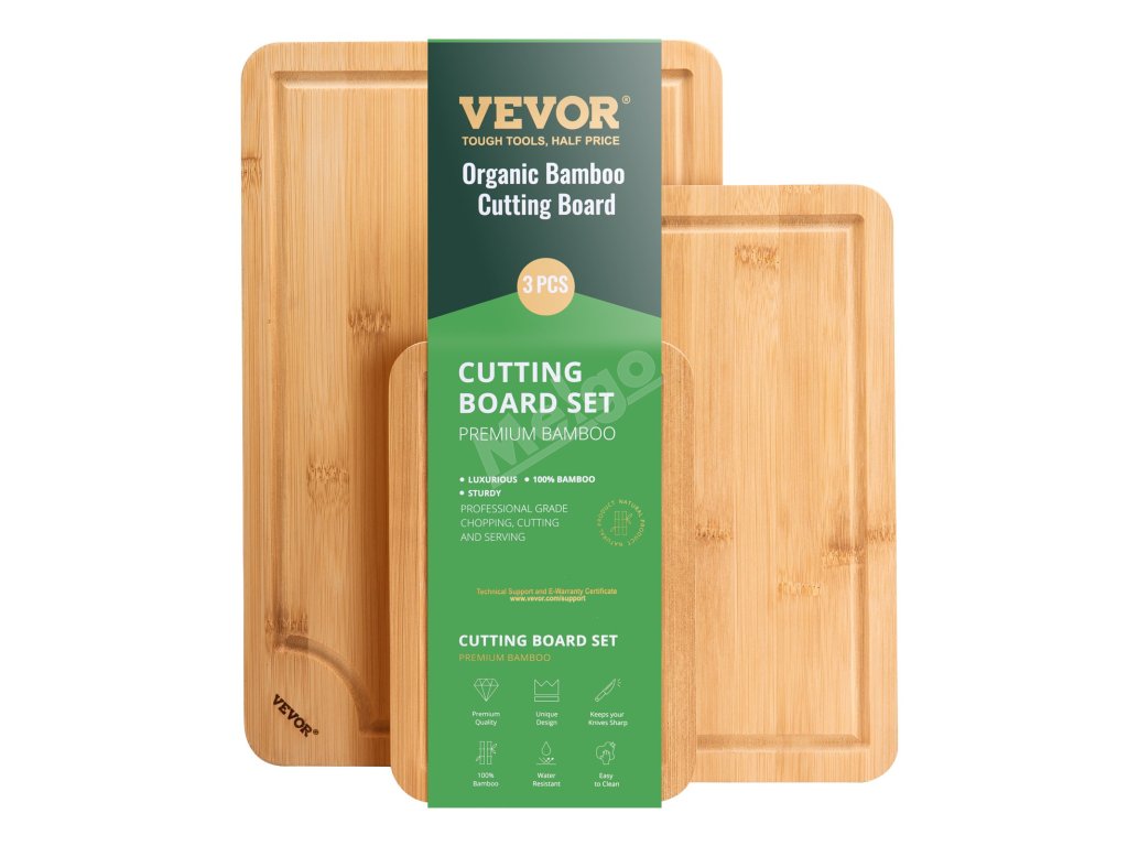 Tato sada bambusových prkének obsahuje tři velikosti, které vám umožní snadno oddělit a zpracovat různé suroviny. Prkénka jsou vyrobena z odolného bambusu, který je udržitelný, jsou pružná a odolná proti prasknutí. Povrch je potažen ochrannou olejivzdornou vrstvou, která se snadno čistí.