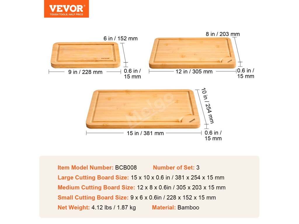 | Malá velikost krájecí desky | 9 x 6 x 0,6 palce / 228 x 152 x 15 mm |