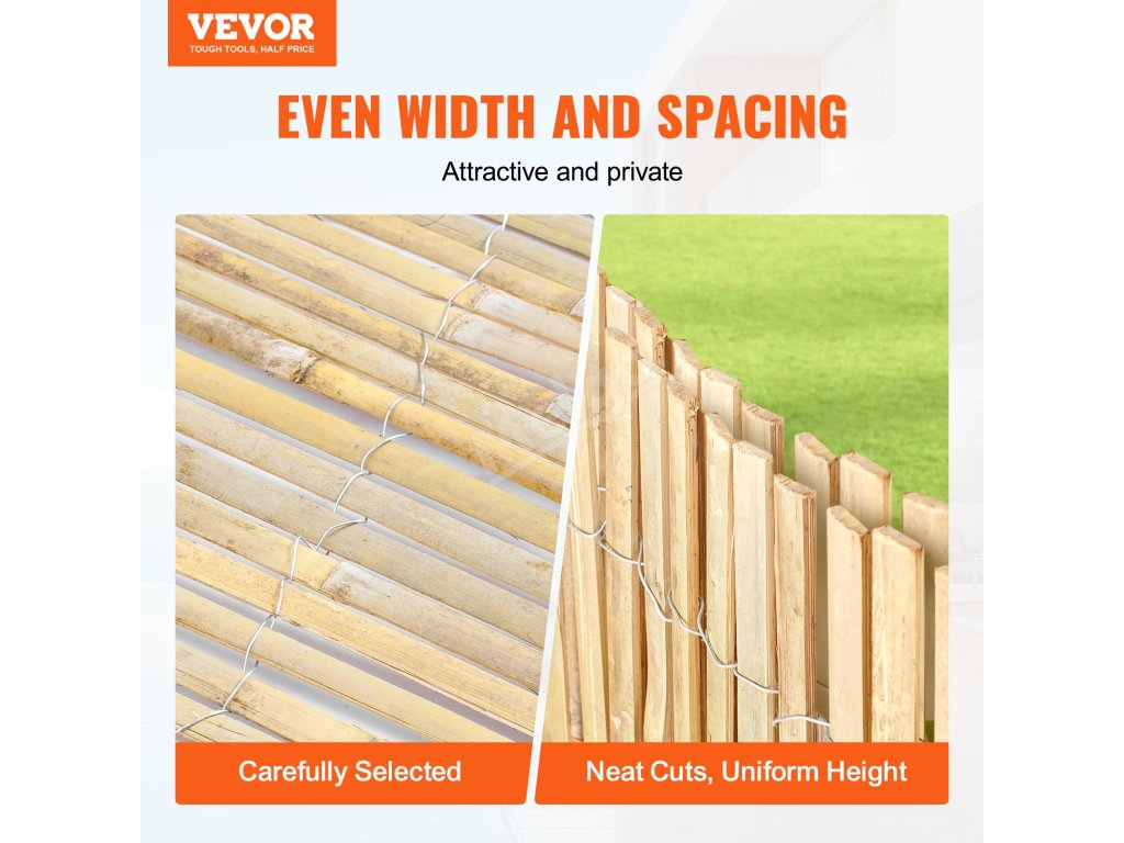 Každý kus je vyroben ze 100% přírodního bambusu a je ručně řezán, aby byla zajištěna rovnoměrná šířka, což vytváří elegantní a jednotný vzhled. Rovnoměrné rozestupy a přesné uspořádání bambusové balkónové zástěny vám a vaší rodině zajistí soukromí na balkóně.