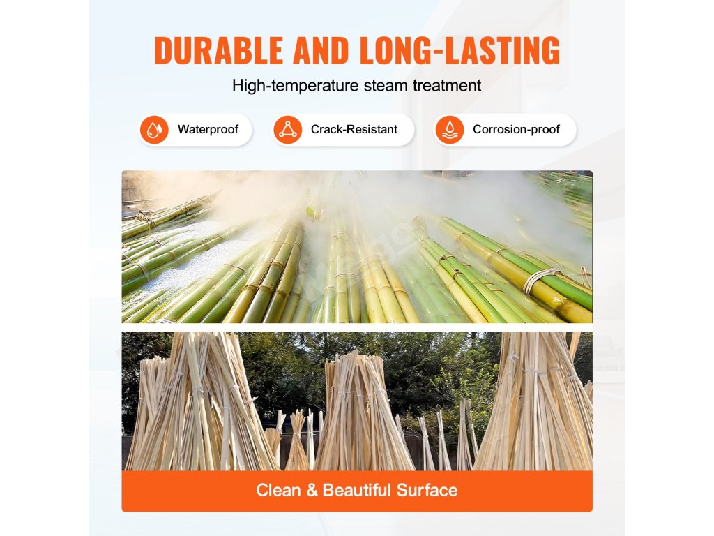 Každá bambusová tyč prochází tradiční úpravou zahrnující napařování při vysoké teplotě, praní a přírodní sušení. Bambusový plot je spojen silnými pozinkovanými ocelovými dráty, které jsou odolné proti korozi a poskytují pevnou konstrukci, což prodlužuje jeho životnost.
