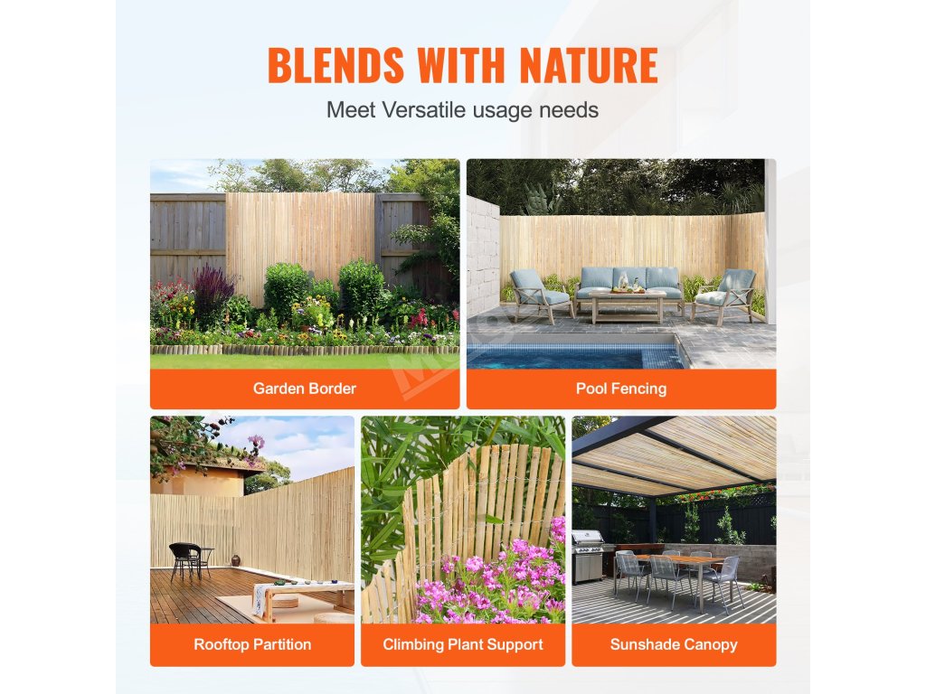 Díky své přirozené kráse a struktuře je tento bambusový stínicí panel ideální pro venkovní oplocení, ohrazení bazénů, rozdělení místností nebo dokonce pro dekoraci stěn. Vhodný pro nejrůznější potřeby.