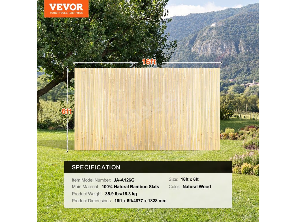 Bambusový panel pro soukromí z přírodního bambusu 6 ft × 16 ft