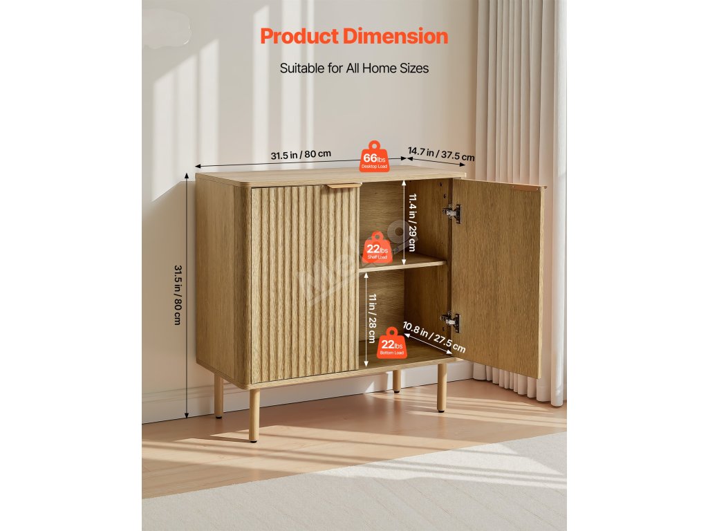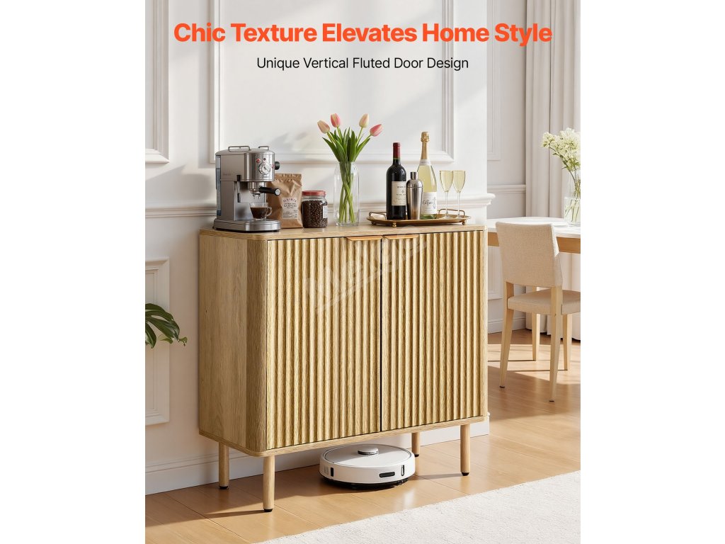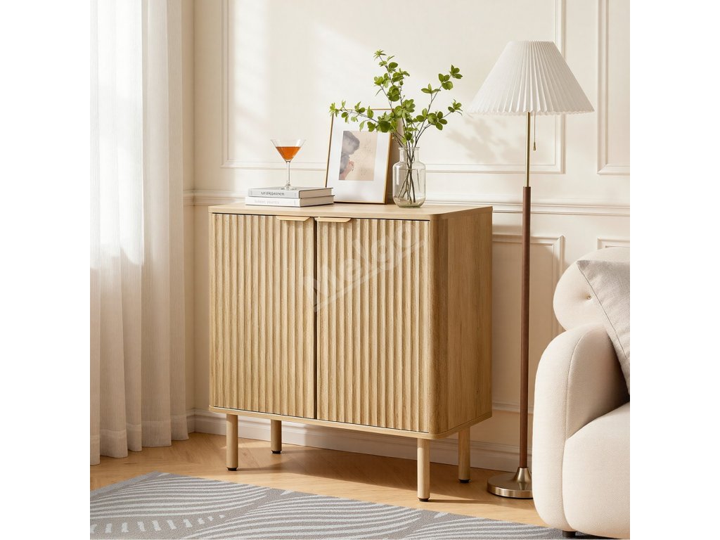 Barová skříňka s žebrovaným čelem, 2 poličky, 2 dveře, 80×37.5×80 cm