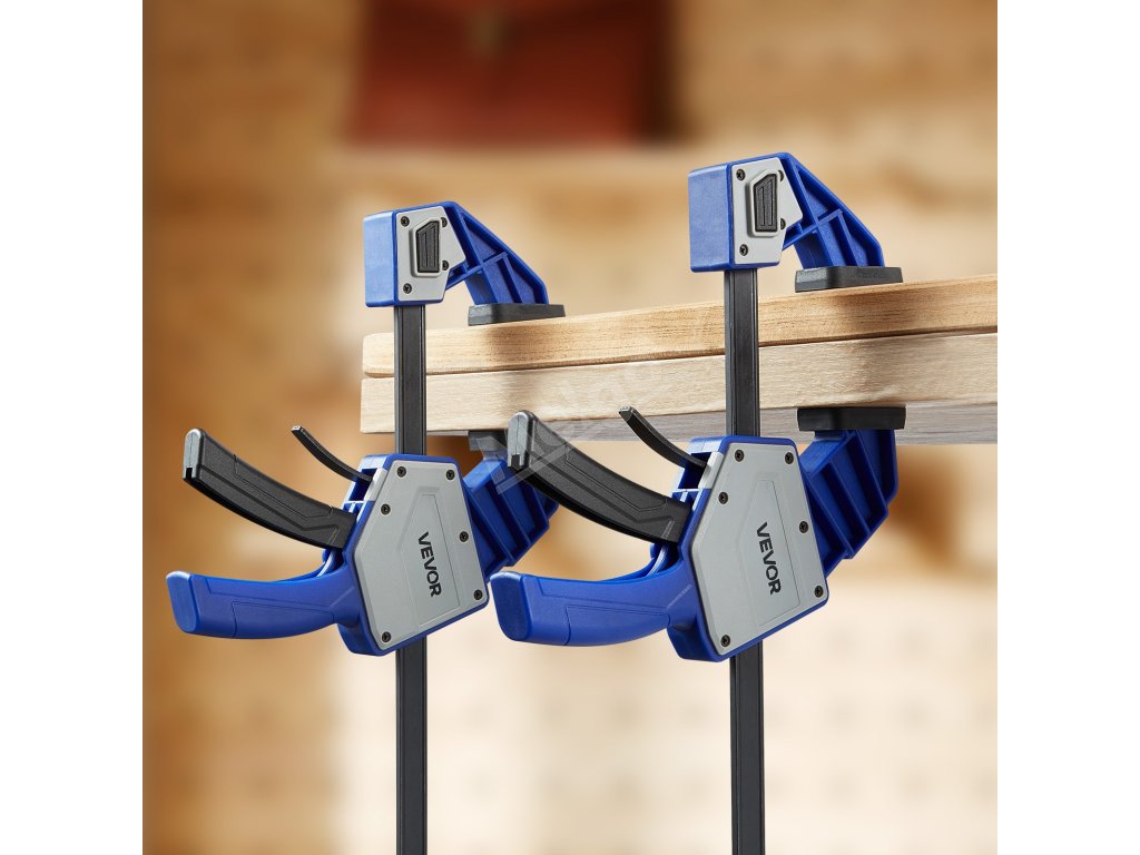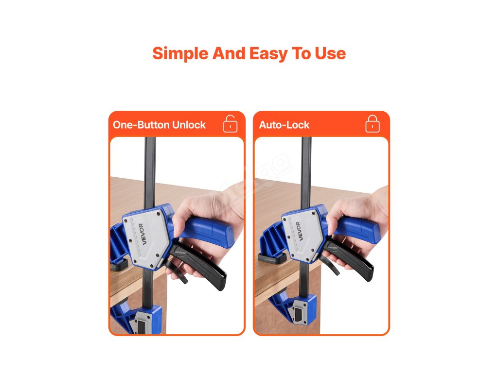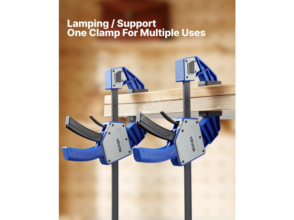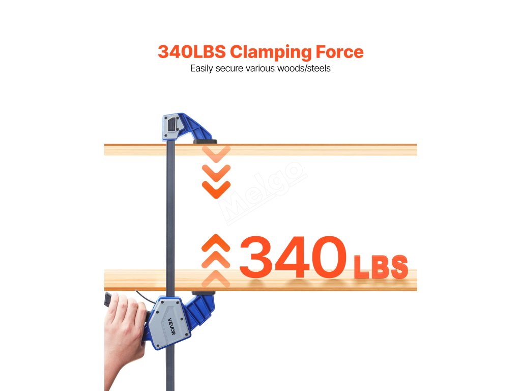 S robustní upínací silou 340 lbs se snadno vypořádáte s jakýmkoli úkolem při zpracování dřeva. Naše dřevoobráběcí svorky jsou bez námahy bezpečné pro řezání, spojování a montáž dřevěných výrobků, jako jsou stoly, židle, skříně a dokonce i ocelové materiály.