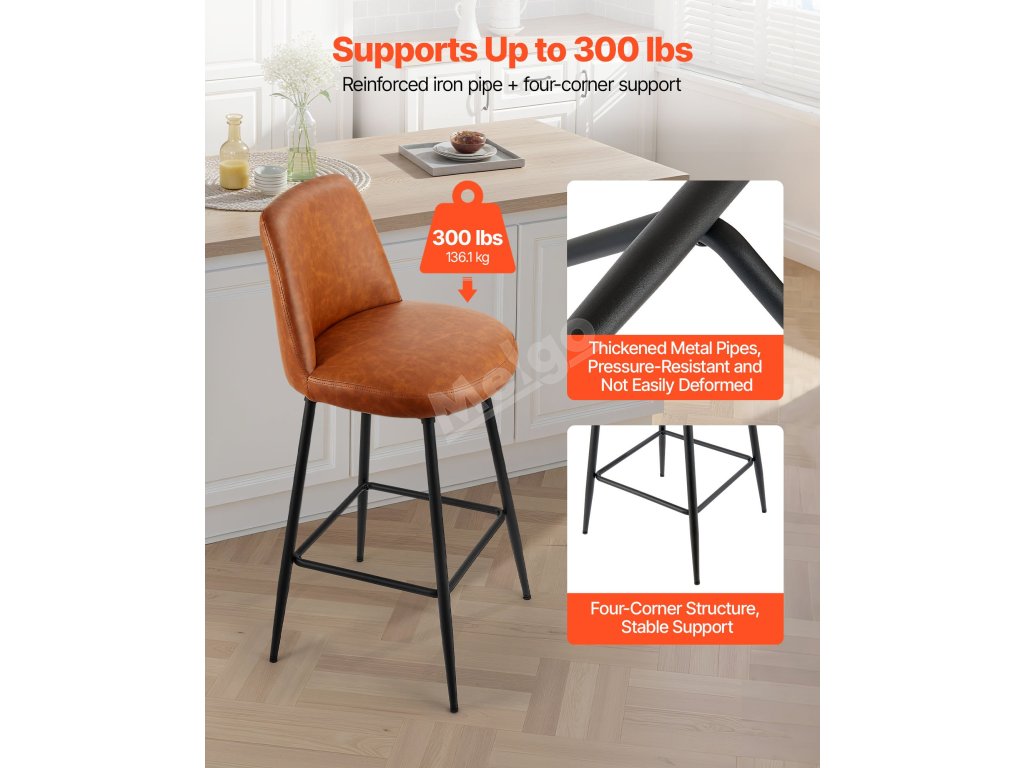 Díky zesíleným železným trubkám a stabilní čtyřúhelníkové konstrukci nabízí tato barová stolička výjimečnou oporu kuchyňské linky, která zabraňuje viklání nebo prohýbání. Je opatřena antikorozním nástřikem, který zajišťuje větší stabilitu a odolnost.